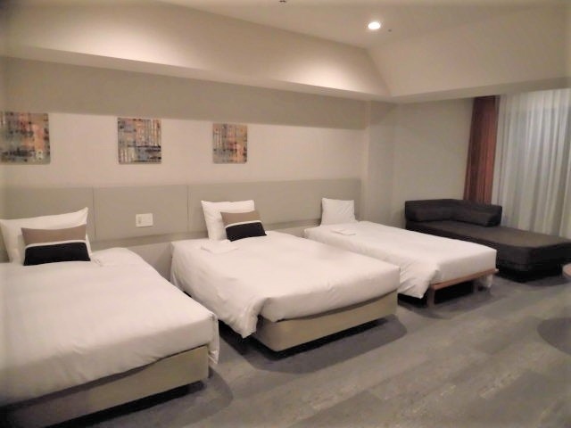 お部屋は広めで、ゆったりとした造り。館内に屋内プールがあって、子供はたくさん泳いでいました。フィットネスルームも無料で利用できて、良かったです。また館内にお土産コーナーがあり、リーズナブルな価格で沖縄土産を購入することができました。朝食はバイキング形式。感染症対策がしっかりとなされていて、安心して利用できました。