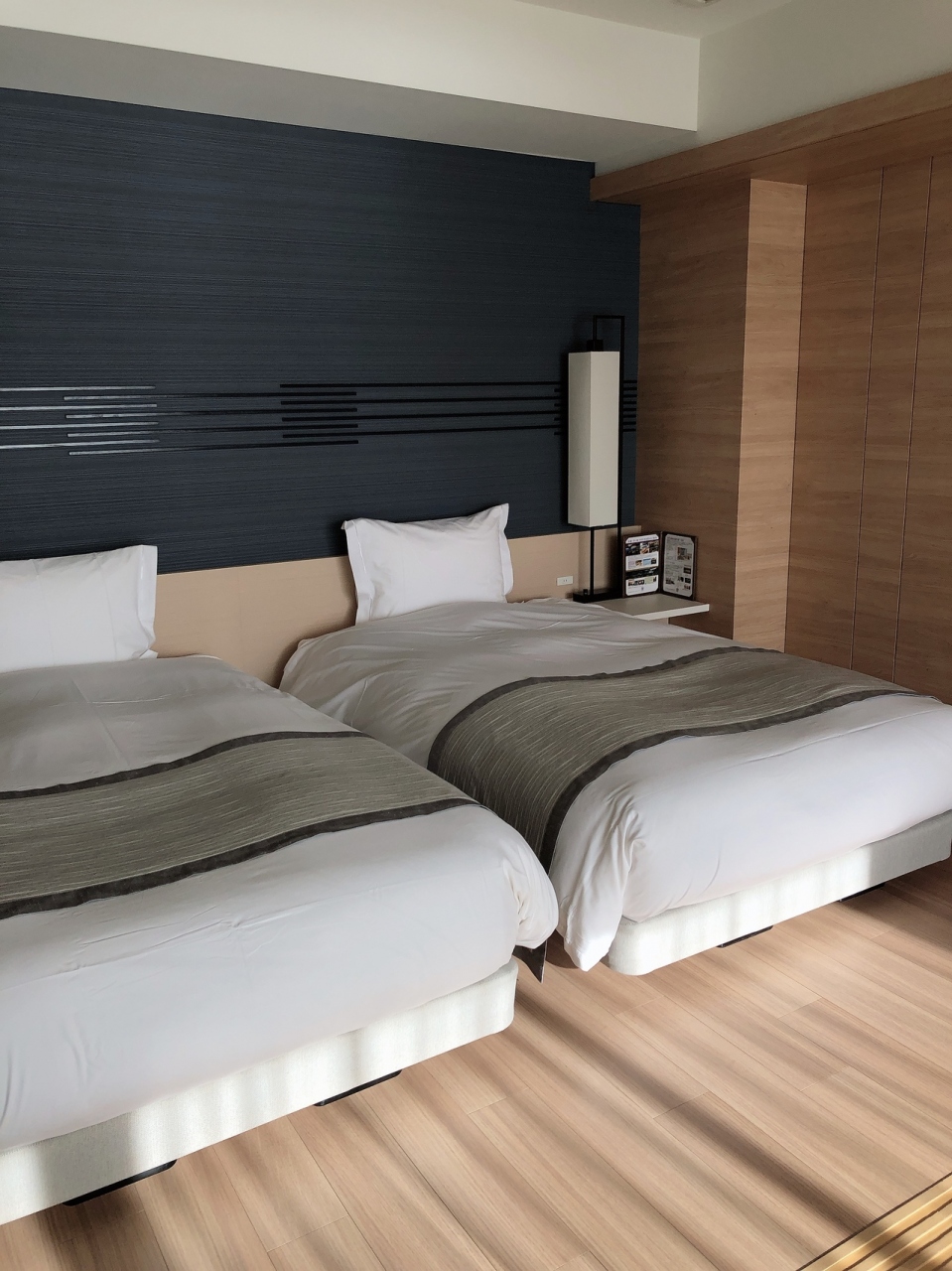 部屋数の多いシーサイドデラックスですが、客室部分は50平米あり、洋室ツインベッドと和室に2客の敷布団が敷けるようになっているので、ファミリー層やグループでの宿泊にも余裕があります。開放的な大きな窓からは神戸港が見え昼夜の景色が楽しめるのが素晴らしです。