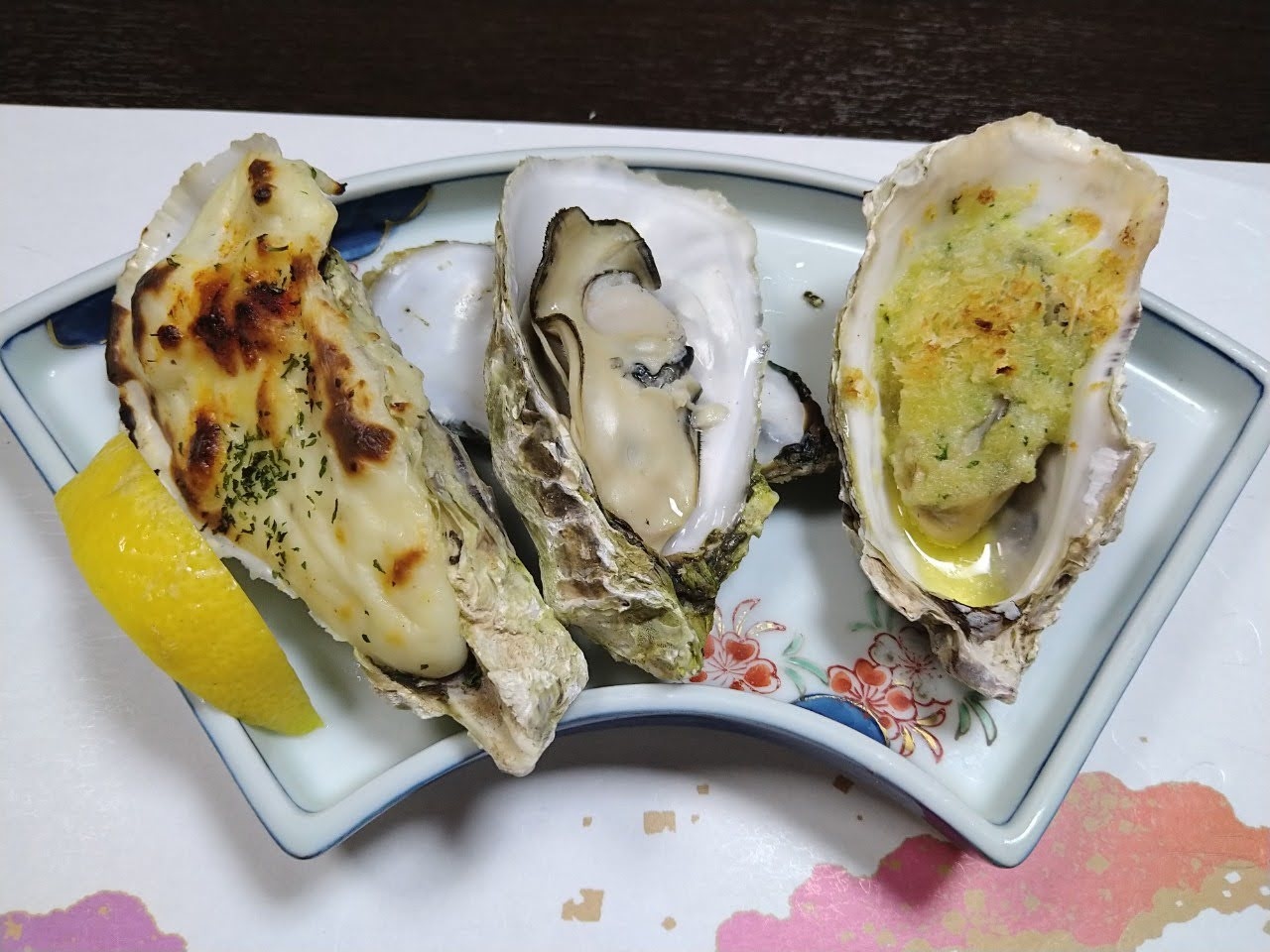 的矢湾を望む高台にある料理旅館です。ここは冬場のカキの料理が美味しい旅館です。生ガキから始まって、カキフライ、コキール、ワイン蒸しに甘酢あんかけに牡蠣飯など考えつく限りの牡蠣料理のフルコースが楽しめますし、牡蠣自体の美味しさも抜群です。年期は若干感じますが、旅館の人の接客も温かくて居心地のいい旅館です。