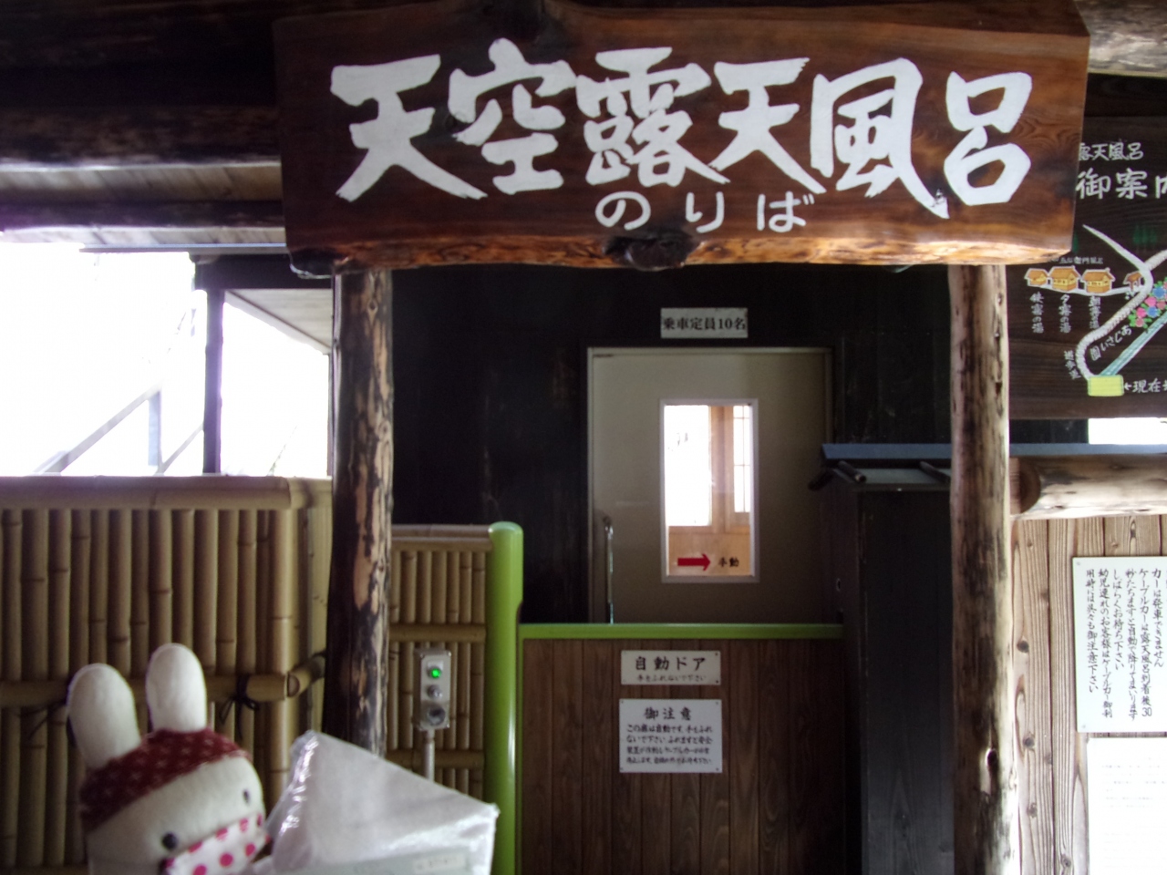 - ケーブルカーに乗って露天風呂へ。