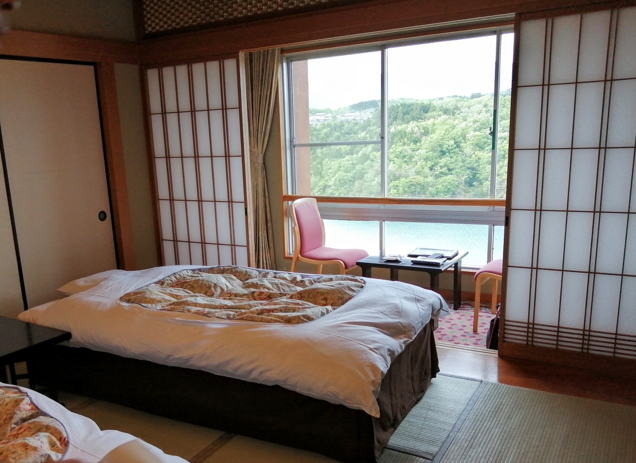 部屋は西館で昔ながらの和室に簡易ベットのツインのような感じ。3点ユニットバス付で