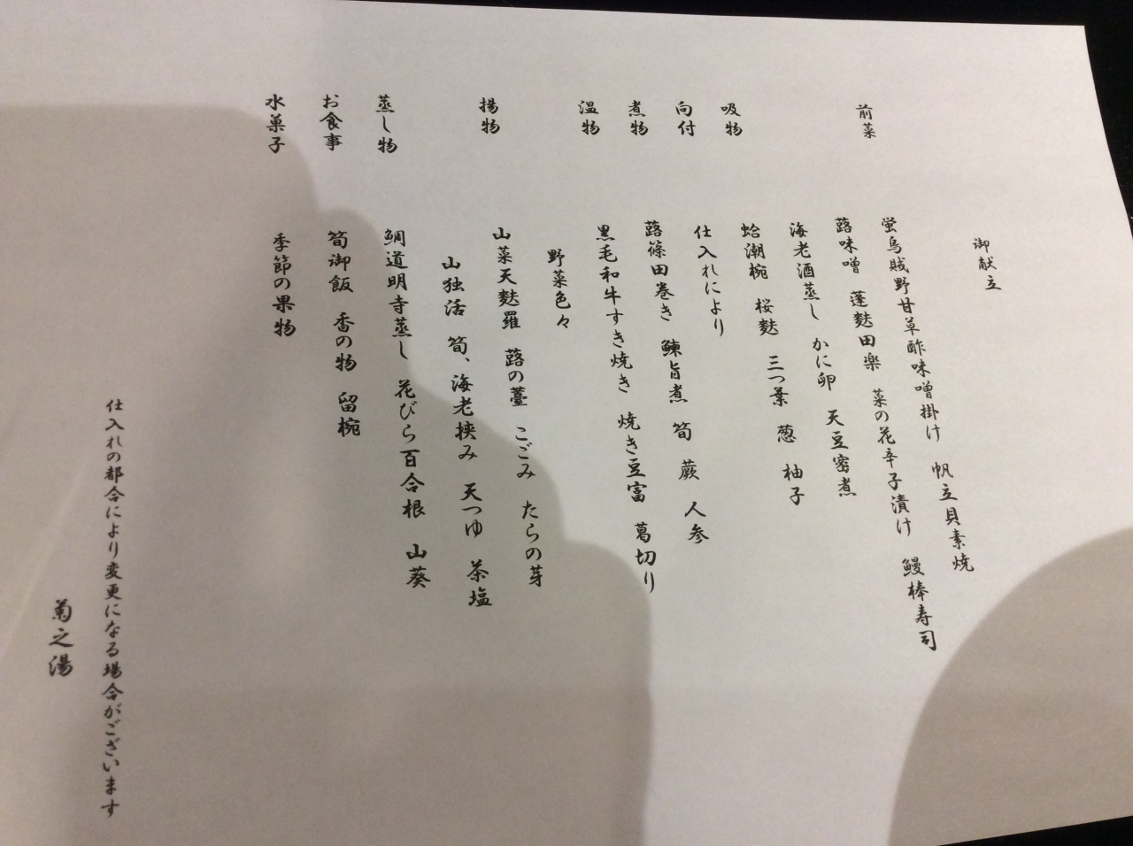 温泉のヒノキ風呂付の部屋に泊まりましたが、あまり温泉を感じる様な泉質の濃さではありませんでした。夕食はボリュームがとても多かったです。前菜の種類が多く、お造り、すき焼き、てんぷら等、品数が多く、量を好む方にはお勧めだと思います。