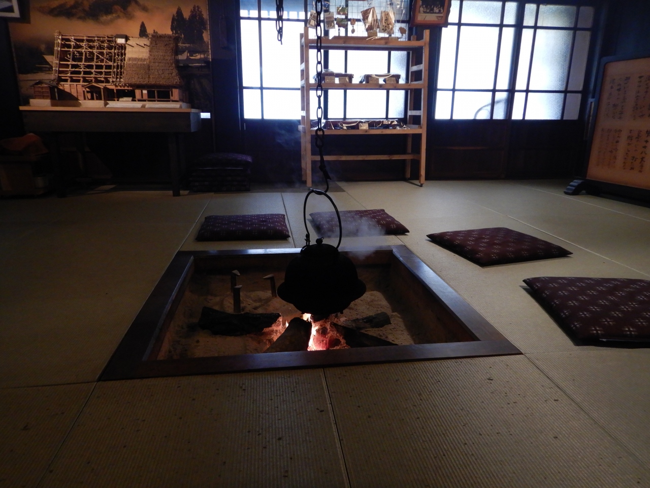 五箇山・相倉集落内の民宿。宿泊はしていませんが集落を訪れた際に館内見学しました。一階は宿泊スペースですが、二、三階にあがると合掌造りの屋根を裏から見られます。展示スペースにもなっていて、養蚕などの産業について解説した物や、当時の民具などが見られます。階段が急なので足の悪い方にはきついかもしれません。
