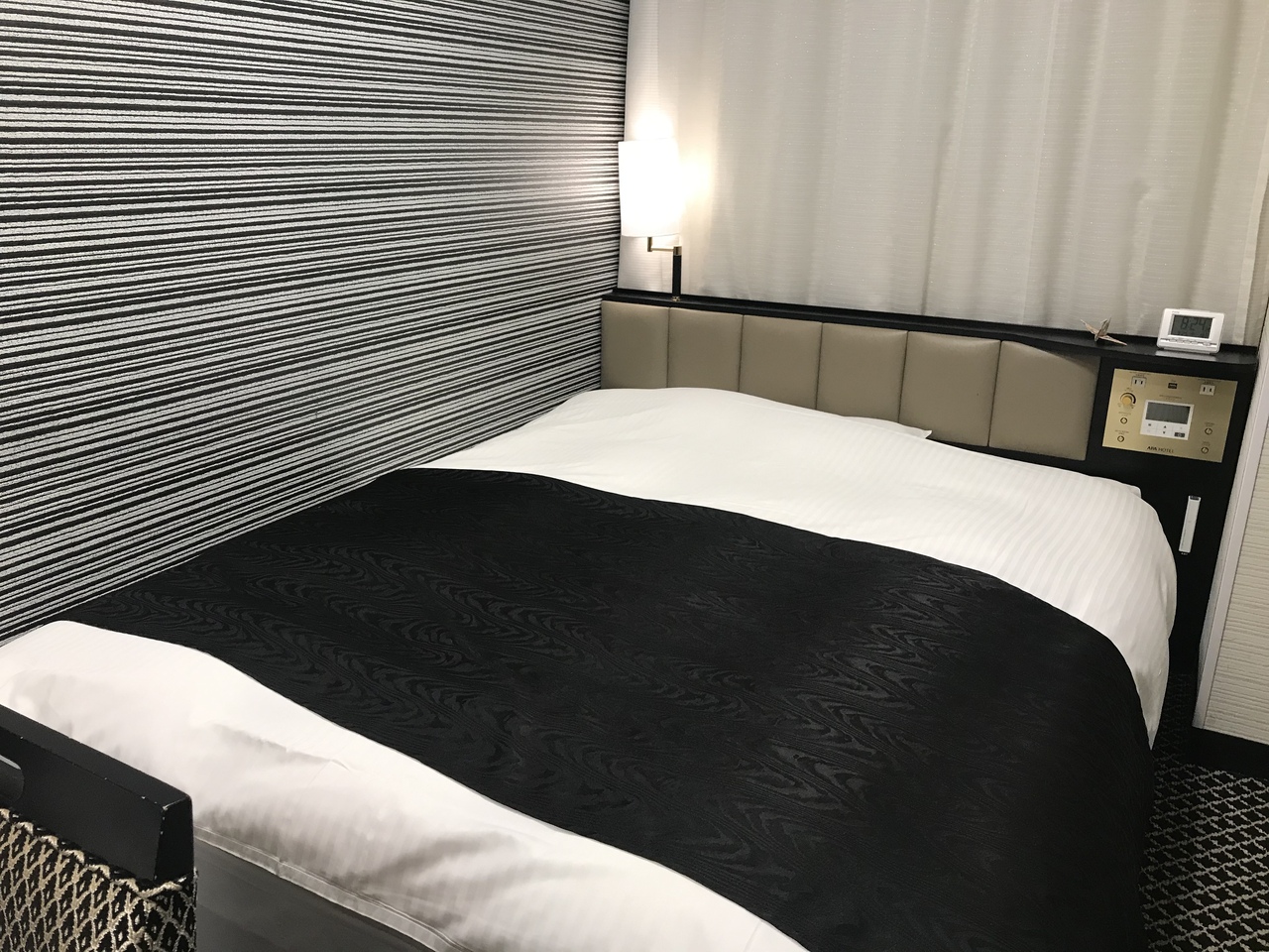 ベッドはアパホテル標準サイズ。テレビはめちゃくちゃ大きい。大浴場はすぐ近くのアパホテル<名古屋栄>の大浴場が利用可能。タオルと部屋のカギを持ってフロントに申し出る必要があることと、当然だがナイトウェア、スリッパでの移動はできないので、なんとなく面倒。夜は客引きが多い地域なので、夜の入浴時は注意が必要かも。