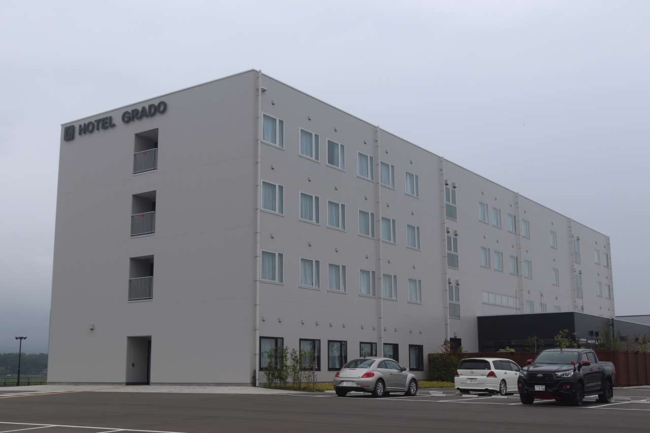 常磐線、震災で移設した新しい新地駅前に立つ新しいホテルです。シングルルームでも16平方メートルあり、ダブルベッドでゆったりです。天然温泉もあり、ゆったりくつろぐことができました。まだ周辺はなにもありません。