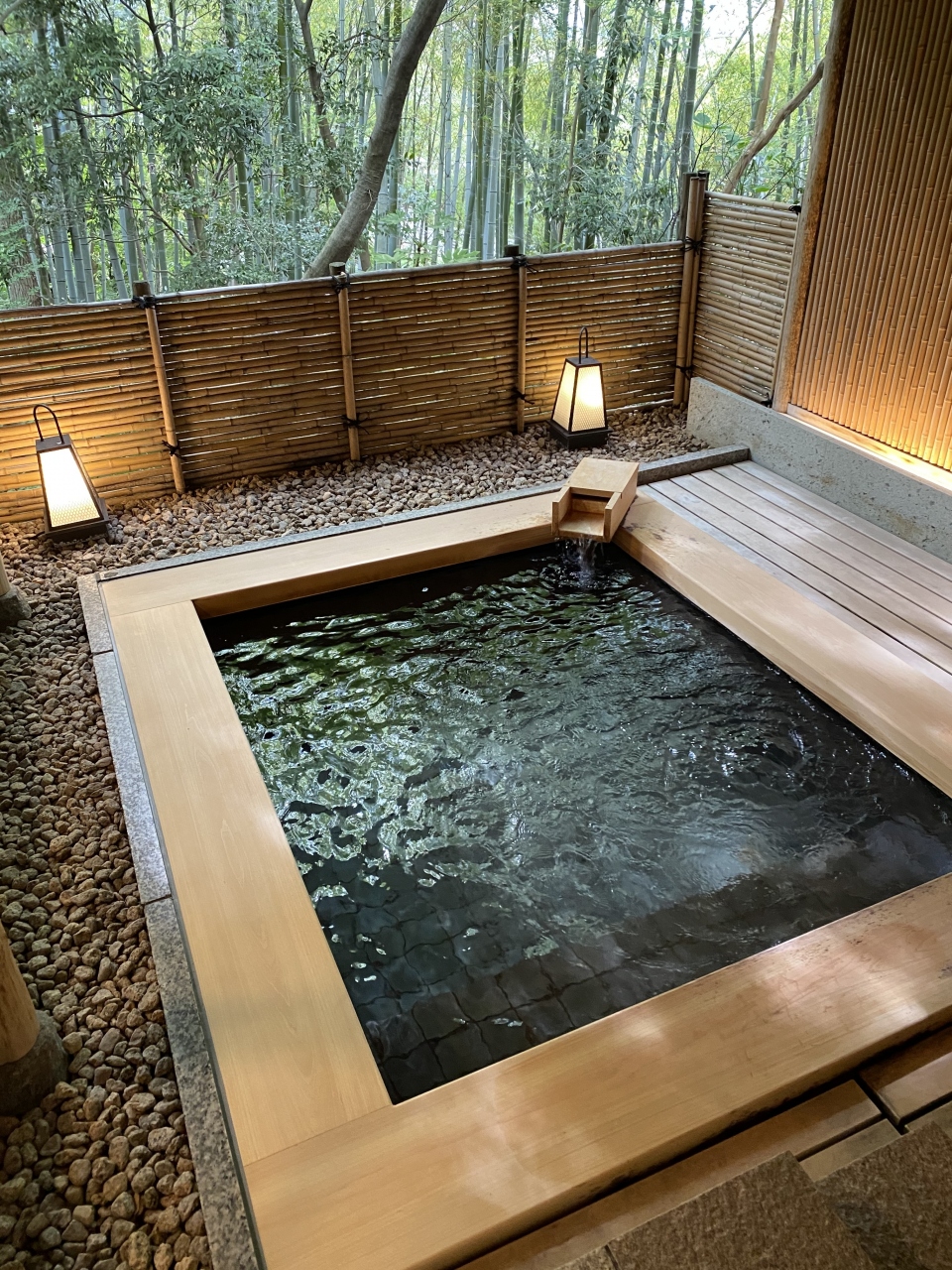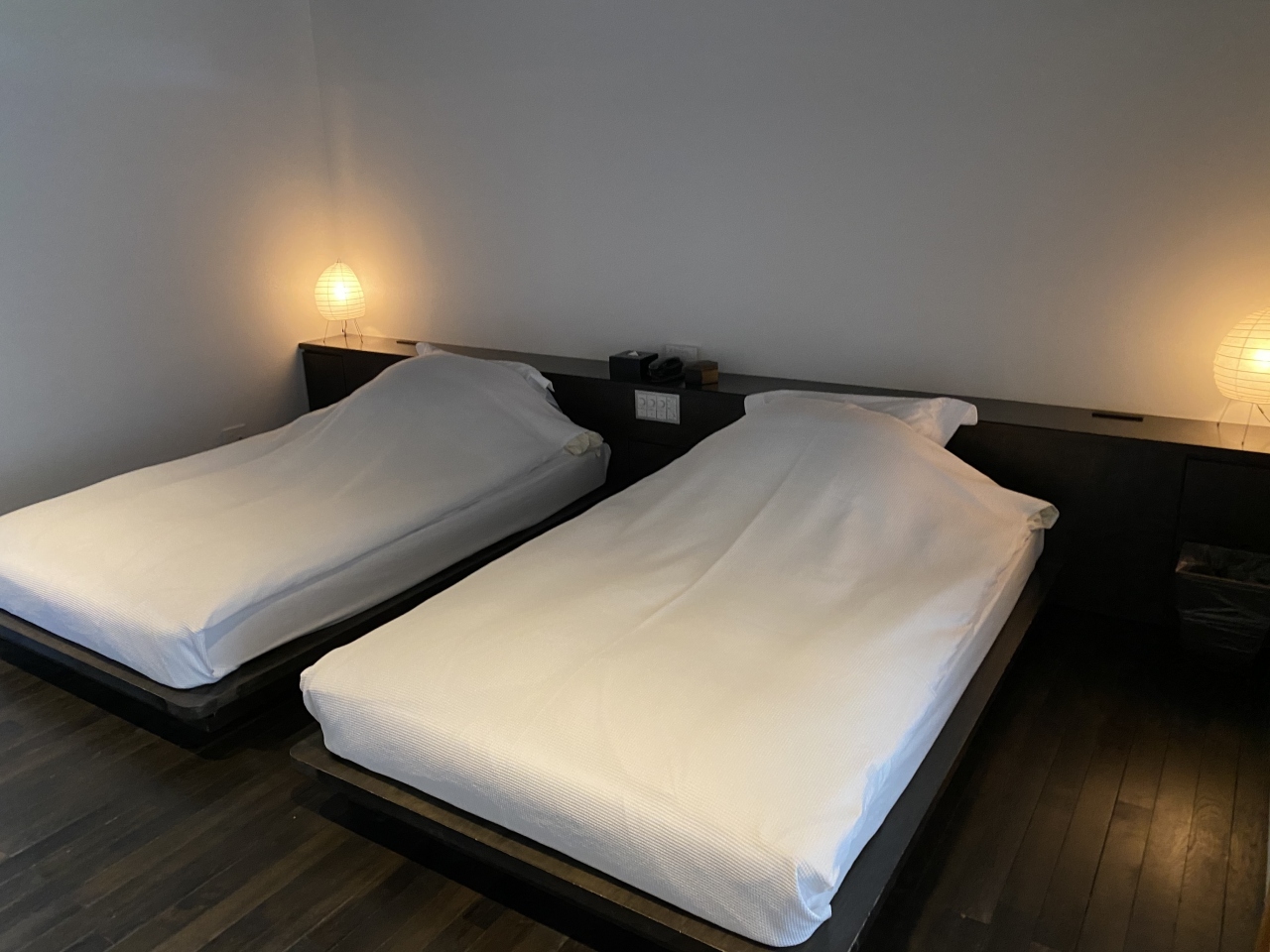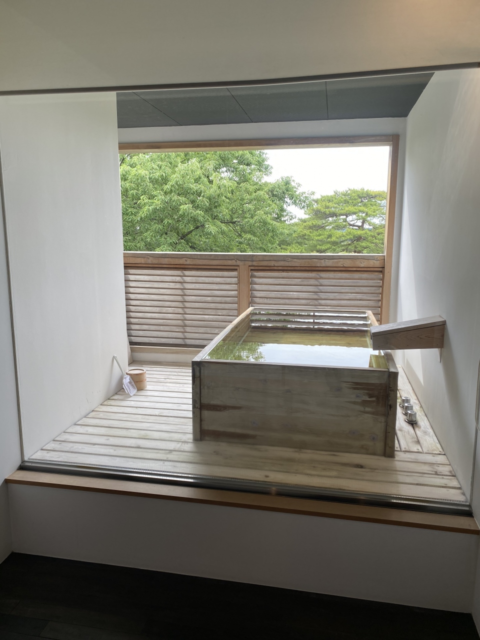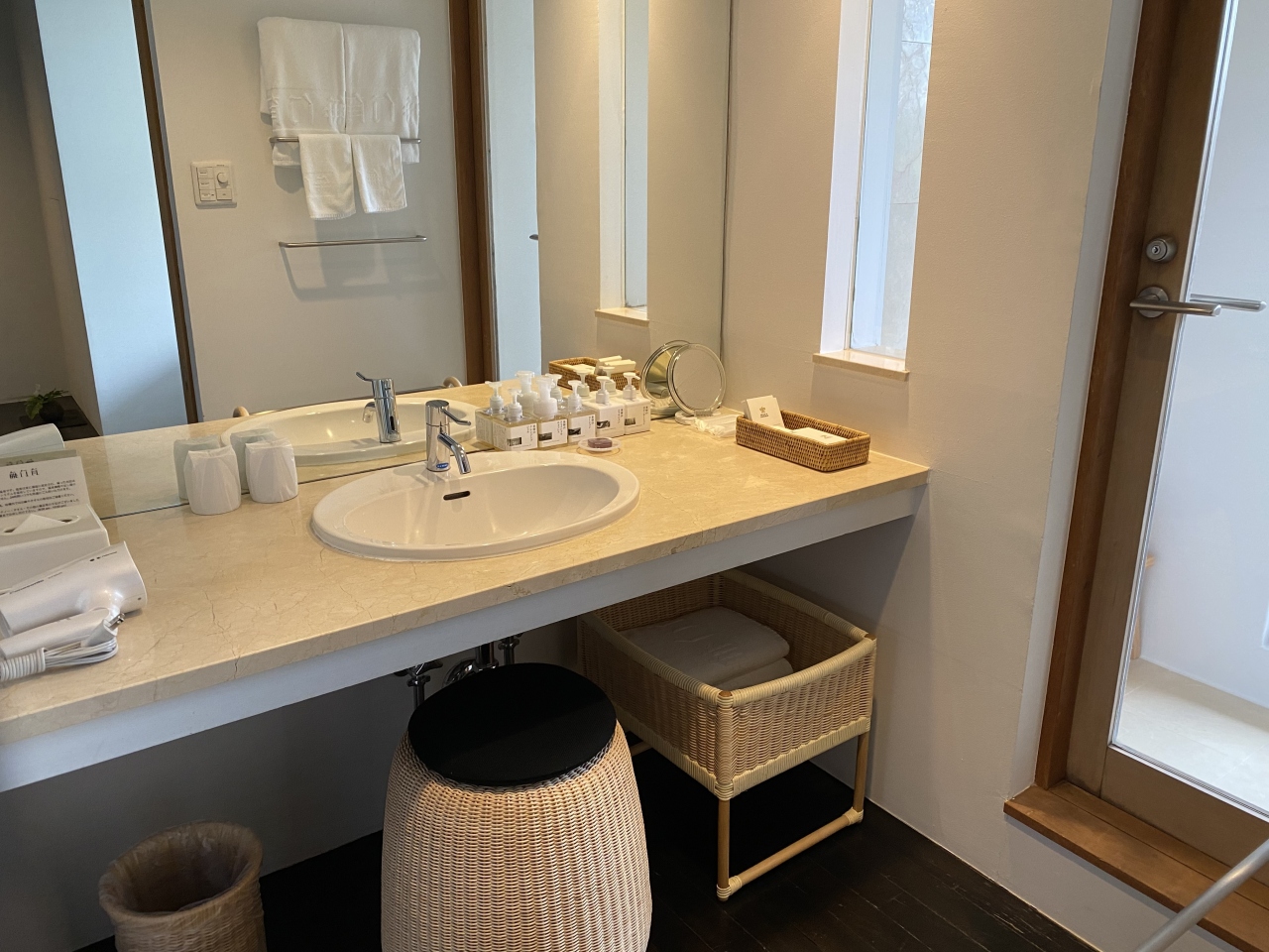 和洋室は和室(居間)、洋室(寝室)、露天風呂、ウォークインクローゼットで構成されており、使い勝手がよく、備品類もいいものが置いてある。清掃状態も良好。ここまでセンスよく纏めるのであれば欲を言えばシンクがダブルだとパーペキだと思う。リネン類は普通、もう少しタオルの質がよいと申し分ない。