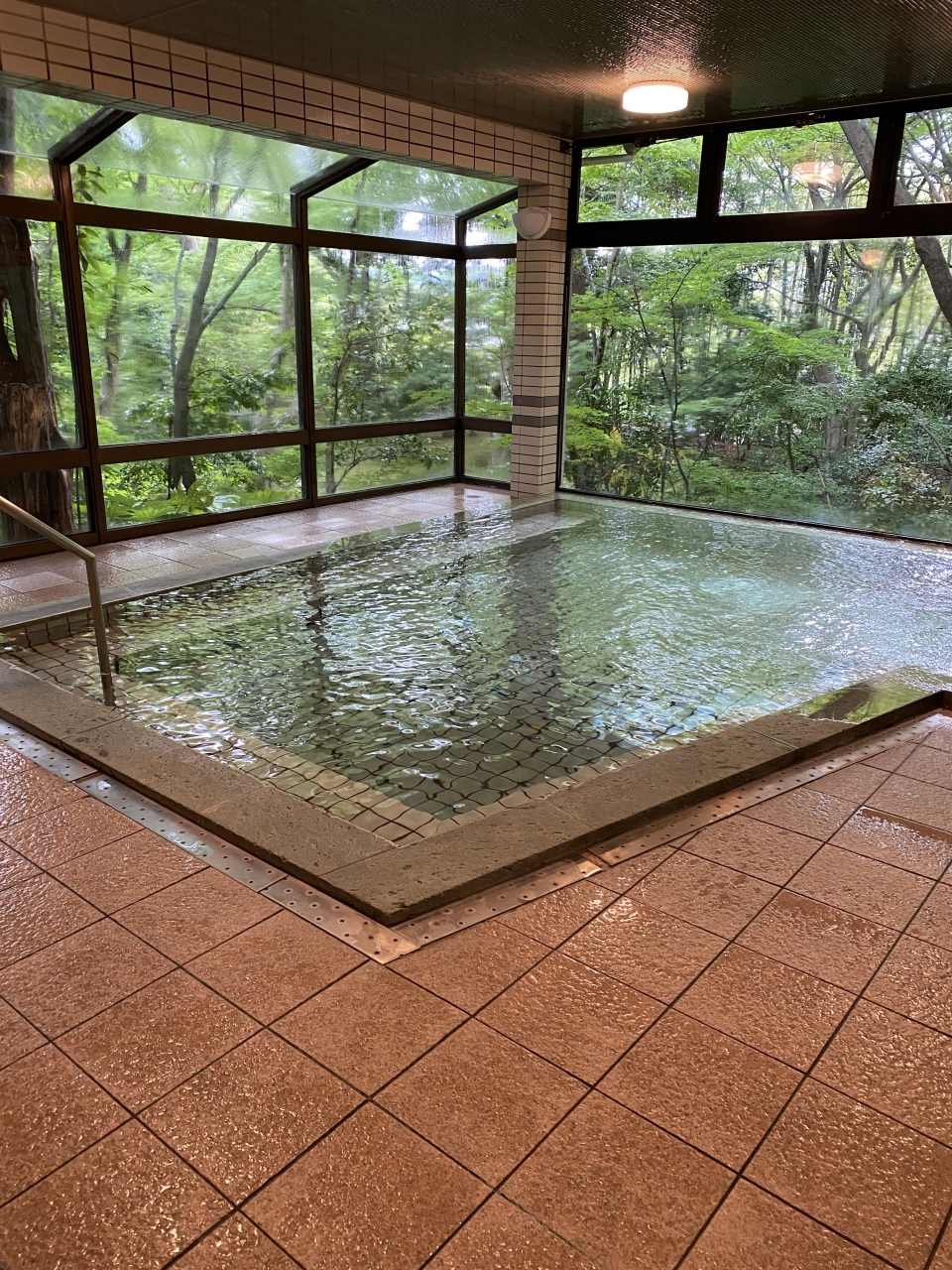 大浴場は緑がよく見えて気持ちよく、清潔に保たれている。