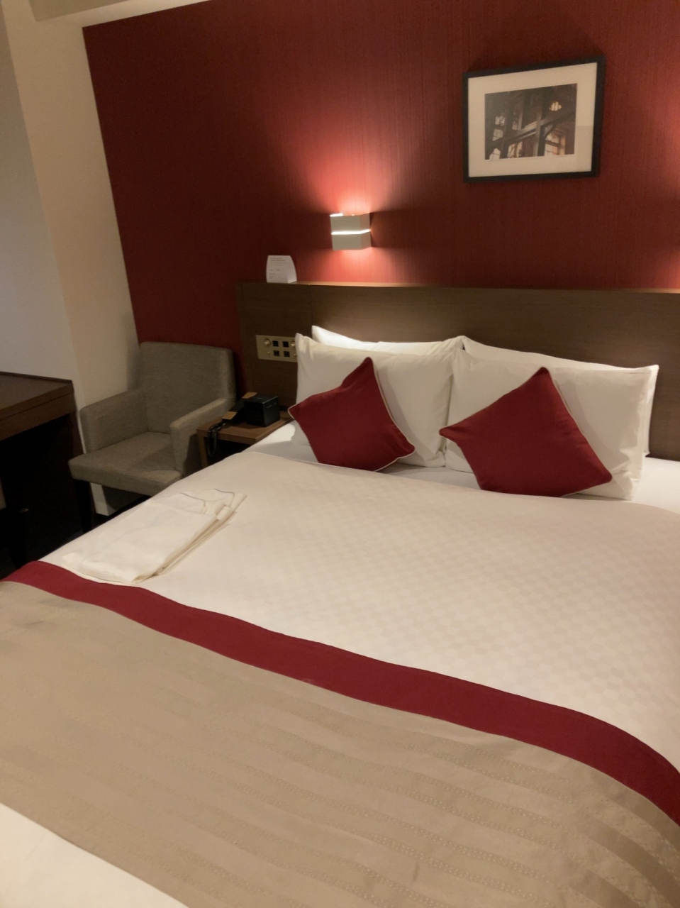 破格で、あるサイトから予約しました。入り口は吹き抜けで広く、無料のジムもあり最高です。ダブルルームにしましたが、かなり広く、玄関が靴を脱いで上がれるようになっているところがまた良いですね。更に広さを感じます。作業台がまたとても広くて、パソコンを広げたり本をたくさん置いたりしても十分余裕があり助かりました。