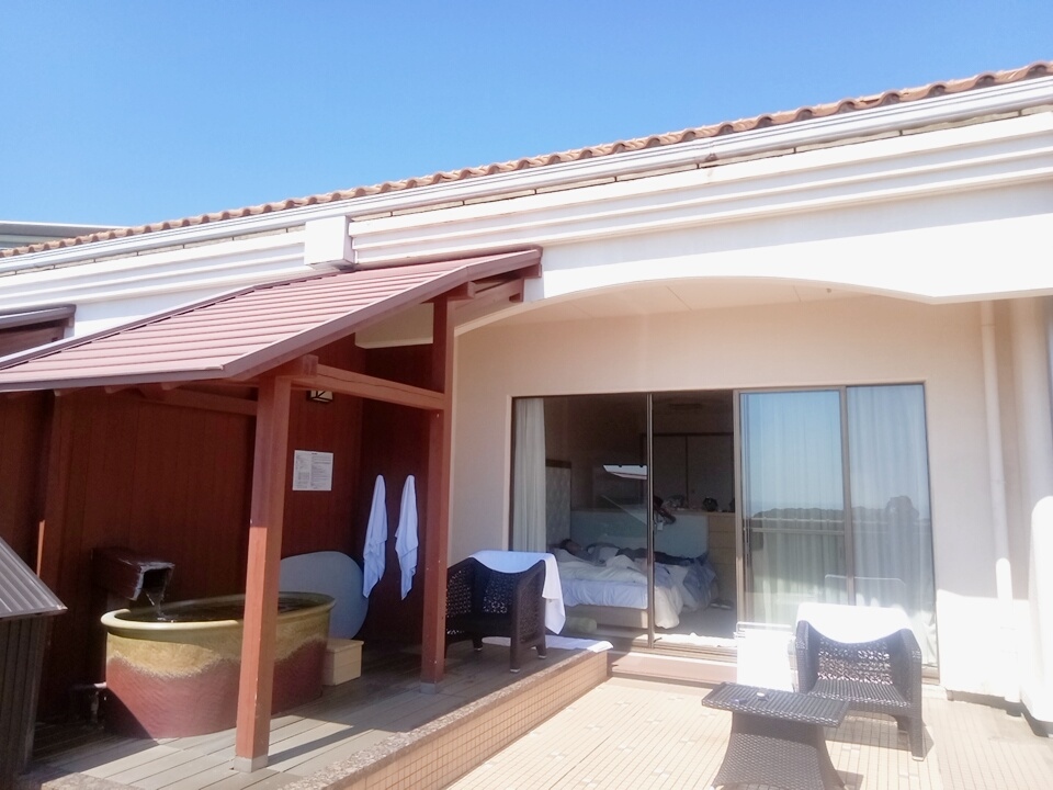 広いテラスに露天風呂がついていて鳥羽湾がとても綺麗に見えます。