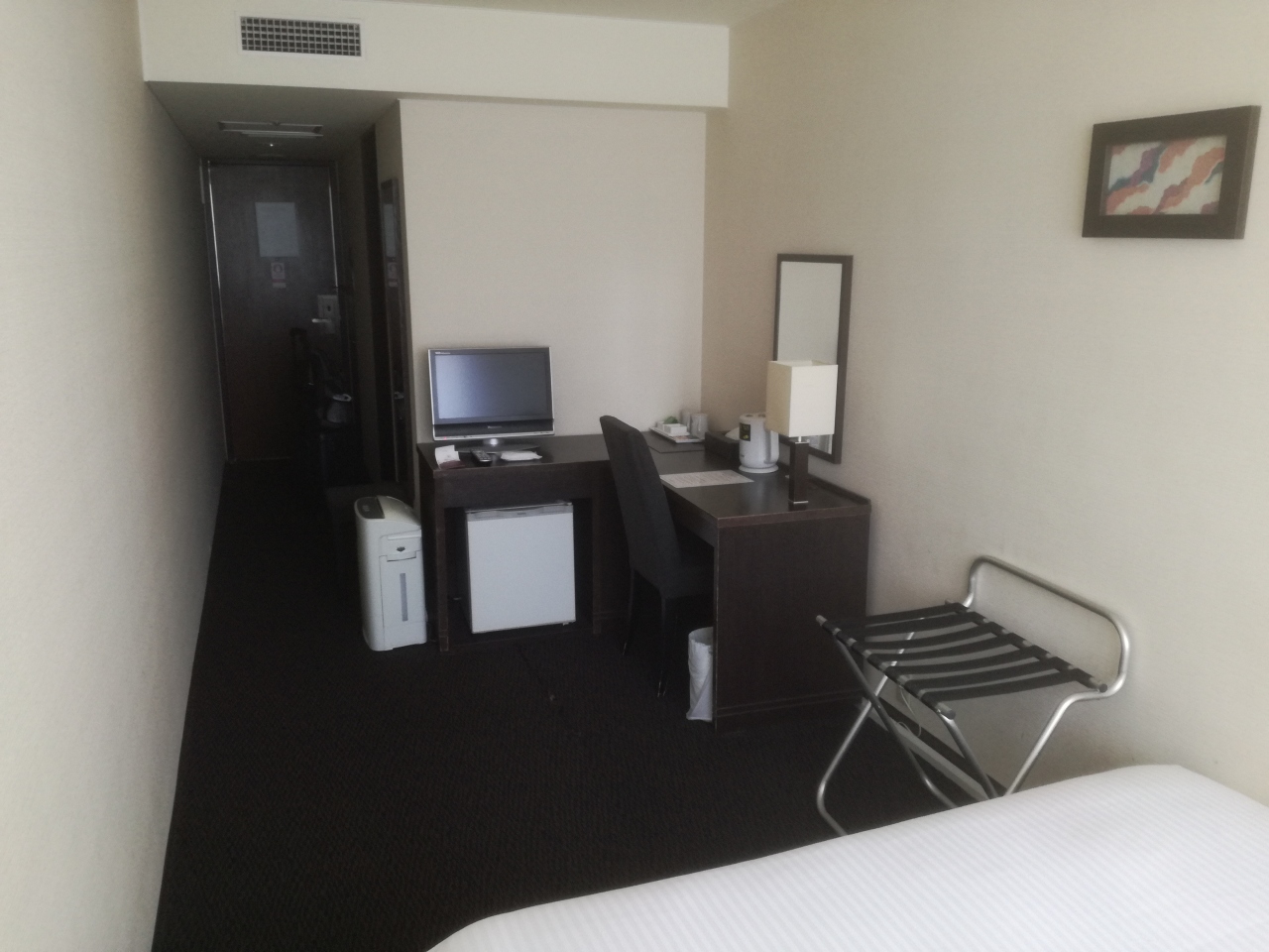 部屋は奥行きがありスーツケースを広げても余裕があります。ドアの避難経路図を見ても812号室と同じサイズが多いようなので狭い部屋はないと思います。