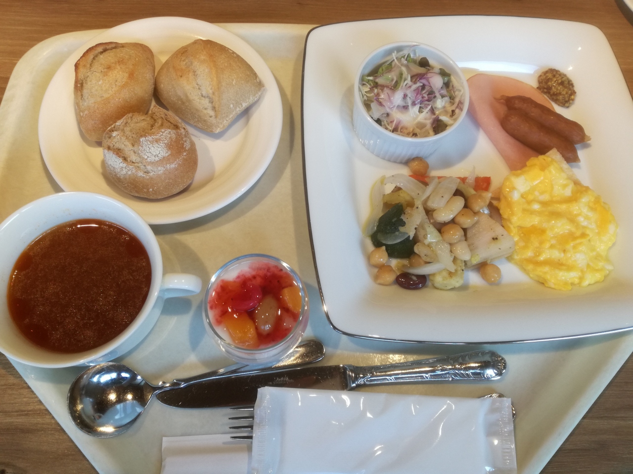 朝食はビュッフェではなく洋食の簡素なプレート。美味しかったが和食好きには向かない。
