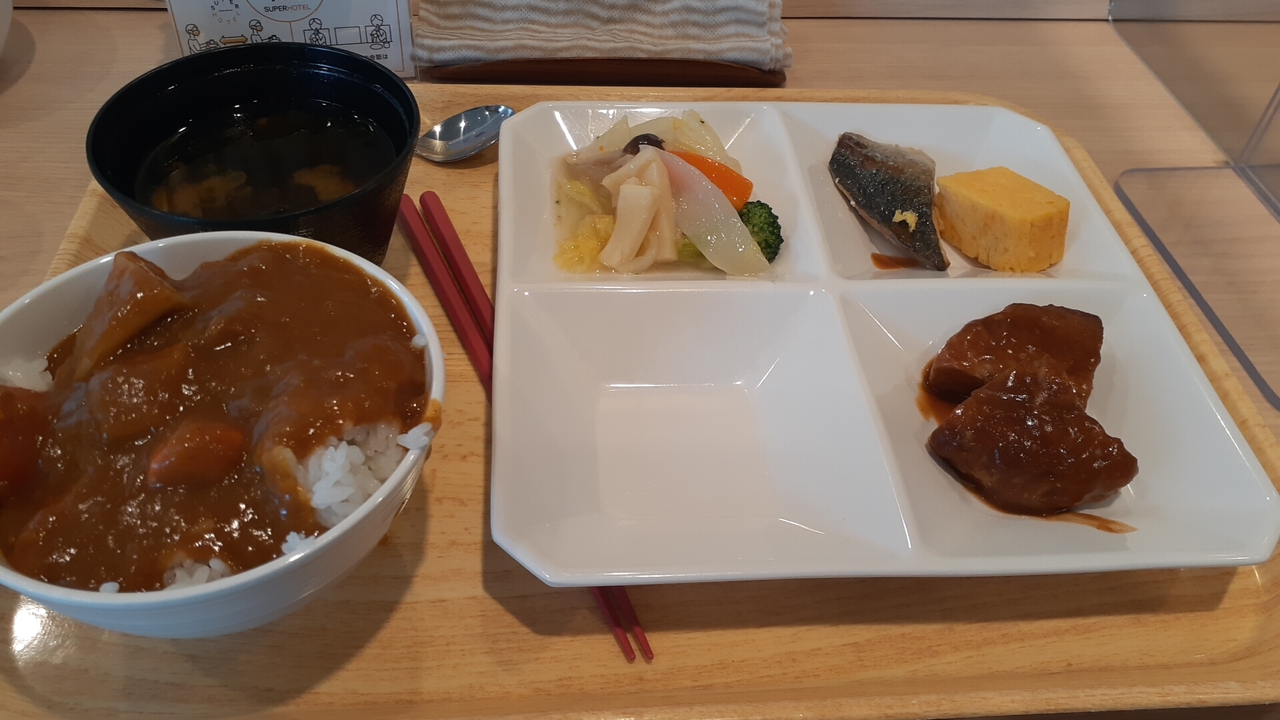 2020年7月に他地域のスーパーホテルを利用した時は朝食のメニューが弁当でしたが、この日宿泊したところ、バイキング形式での朝食が復活していて嬉しい思いがしました。
