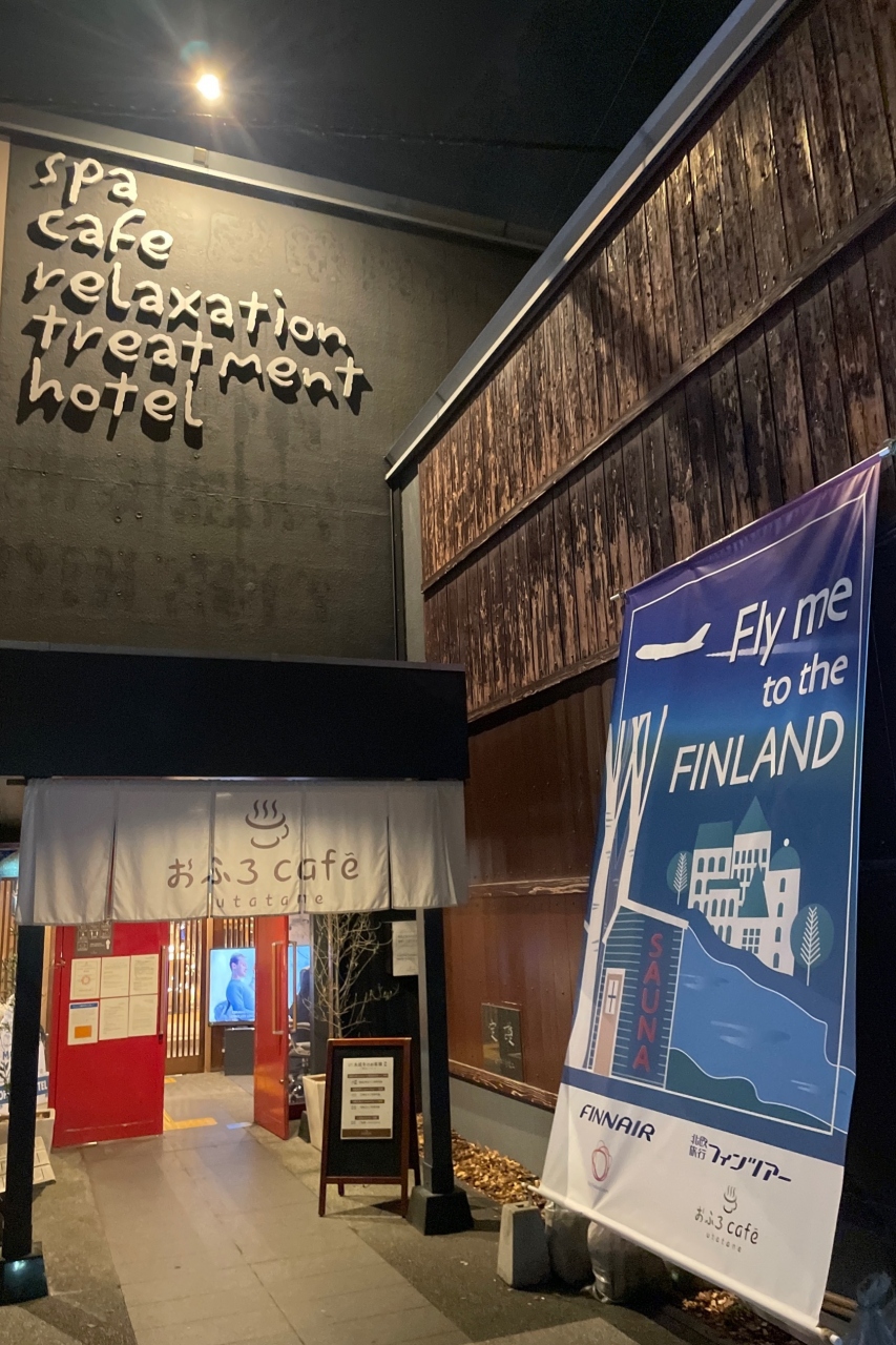 鉄道博物館の北方にあるおふろcafe utataneでは、現在、フィンエアーとコラボのキャンペーンを実施しています。