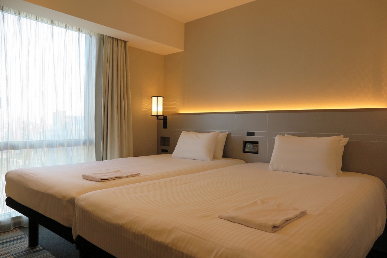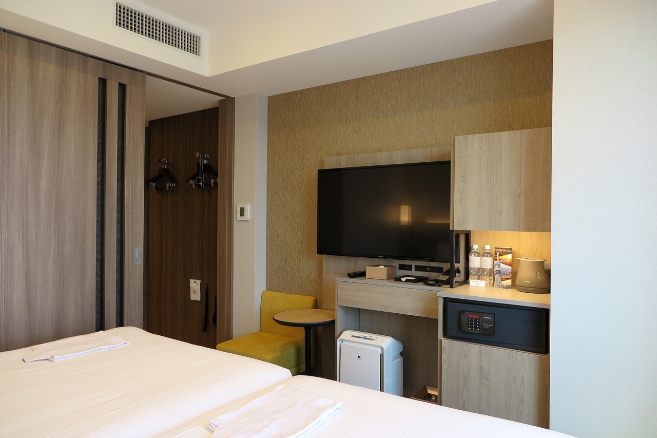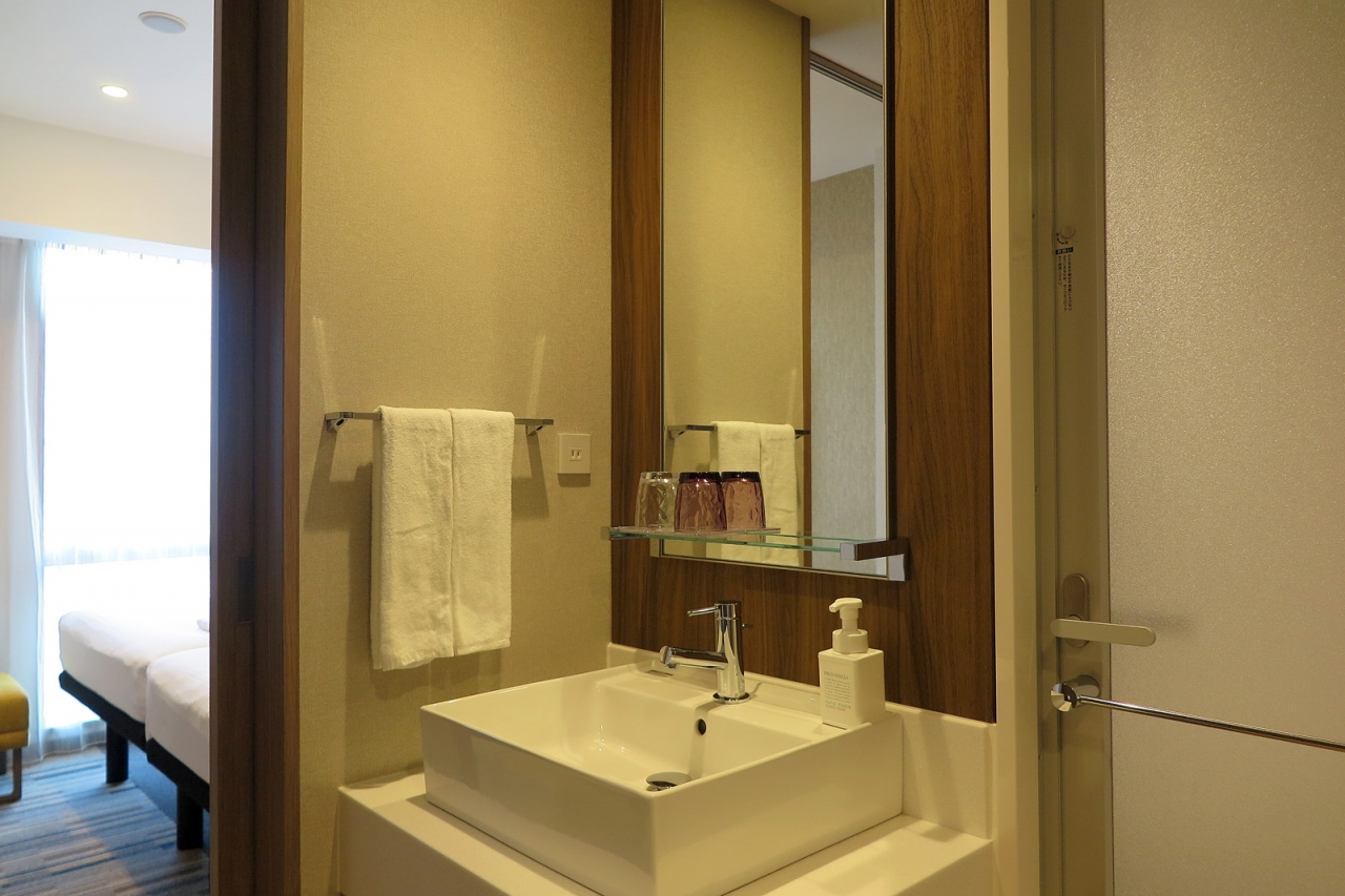 2020年10月8日開業という新しいホテルです。「松屋浅草」の向かい側ですから大変に便利です。館内に入れば、そのロビーには案内係が常駐しており、挨拶もしっかりされていました。客室階のエレベーターホールのデザインには和のテイストが用いられているなど、館内でも浅草を感じられます。今回宿泊した客室は最上階のツインルームB、とても綺麗で清潔感がありました。やはり一番のアピール点は洗面所・トイレ・洗い場付き浴室が独立したバスルームになると思いますが、バスアメニティにも不足を感じることなく、とても快適でした。その奥の居住部分にはハリウッドツインベッド、さすがにベッド周りに余裕はなく、家具といえば小さなソファーとティーテーブルのみで、決してビジネス向きではありません。ただヘッドボード部分には照明・空調などをコントロールできるタブレット、壁には43インチの4Kテレビという最新設備、ボトルウォーターもしっかり2本、窓の外を眺めれば左手に隅田川と吾妻橋、右には隈研吾さんデザインの「浅草文化観光センター」と浅草の景色も楽しめますので満足度は高いです。また館内にはコインランドリーや電子レンジなども設置されていることもあり、とりわけ観光で利用するには素晴らしいホテルだと思います。室内には日本茶しか用意されていませんが、レストランの一角には無料で利用できるコーヒーマシンがありました。
