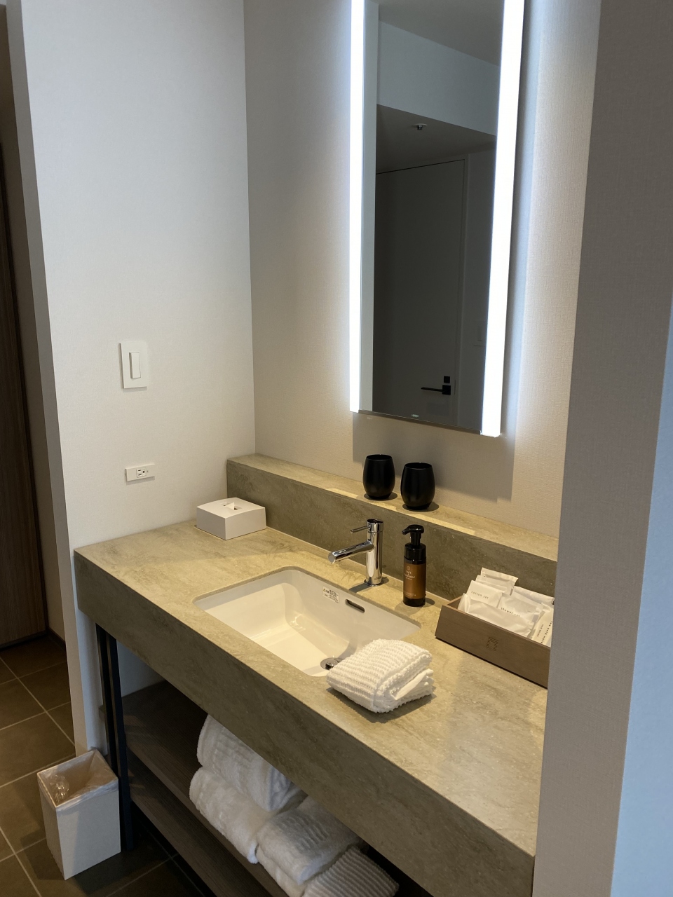 バスルームのレインシャワーの水圧が弱いのが気になった。