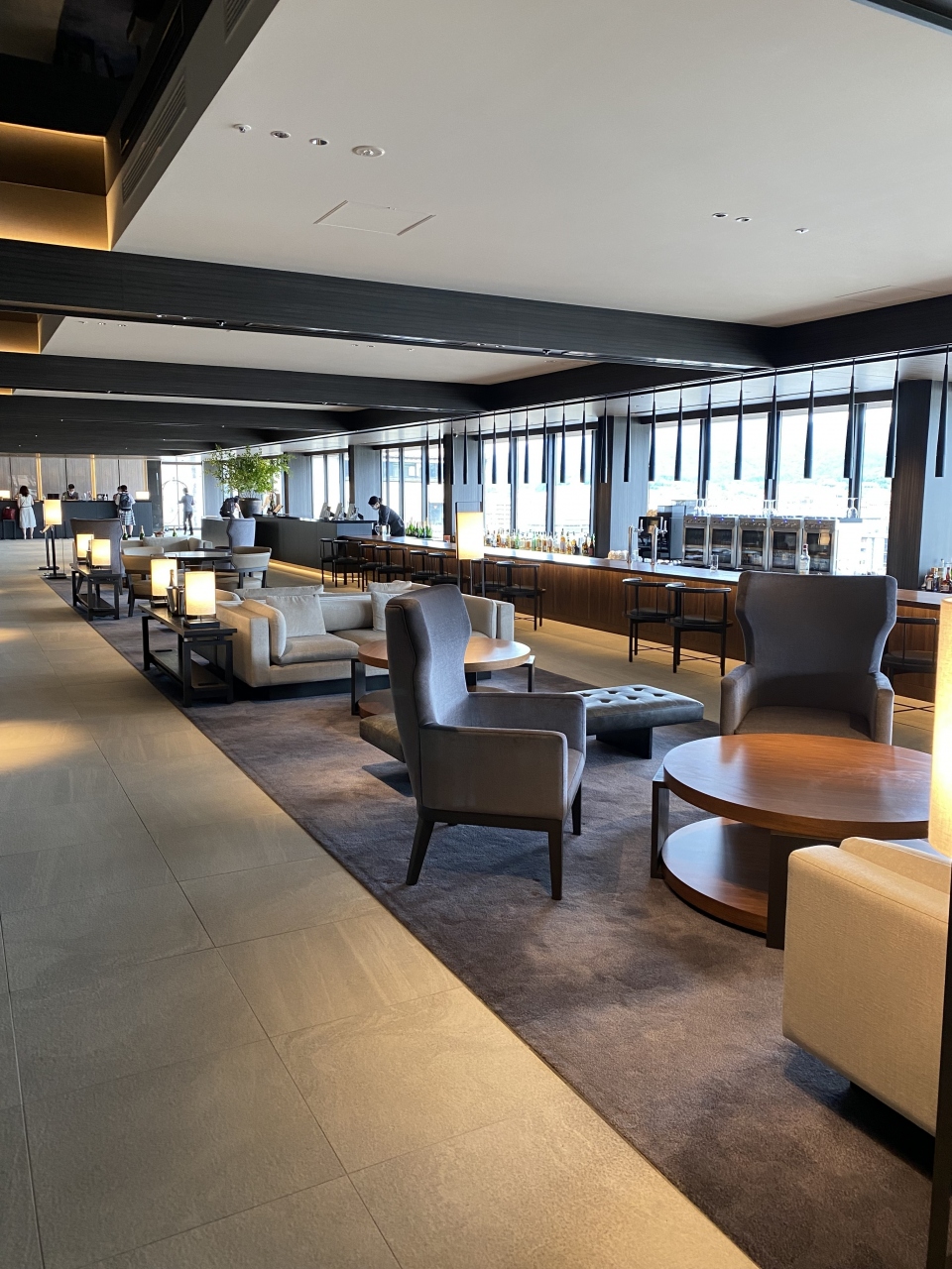 エレベータで8階のロビーへ。広々した空間で、ホテルから東山を望む眺望がキレイ。
