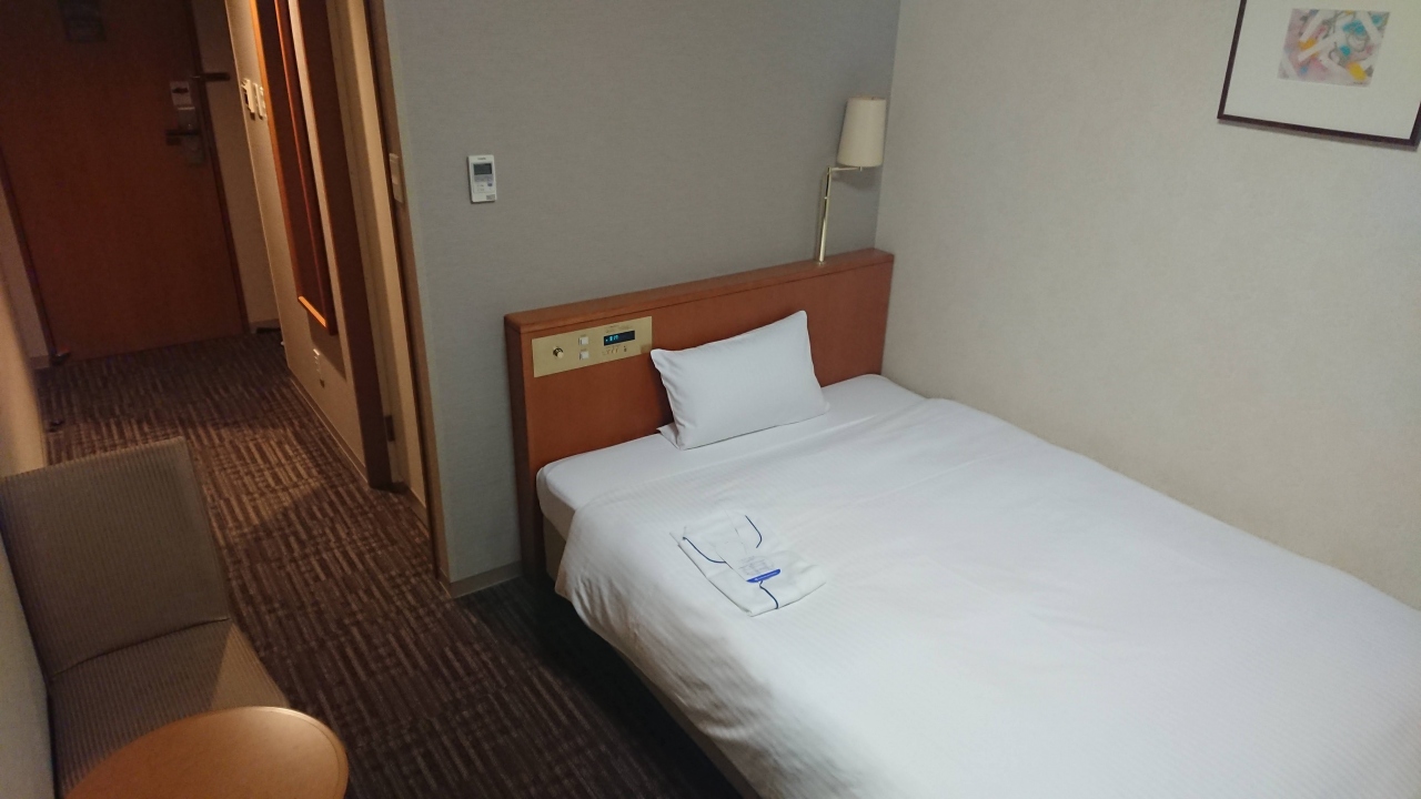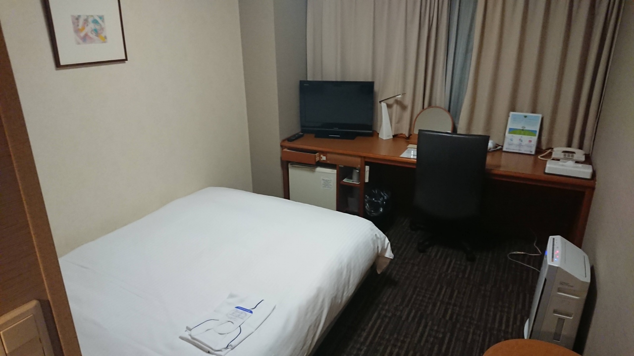 部屋に行くと、シングルにしては余裕があり、そこまで狭さを感じないです。