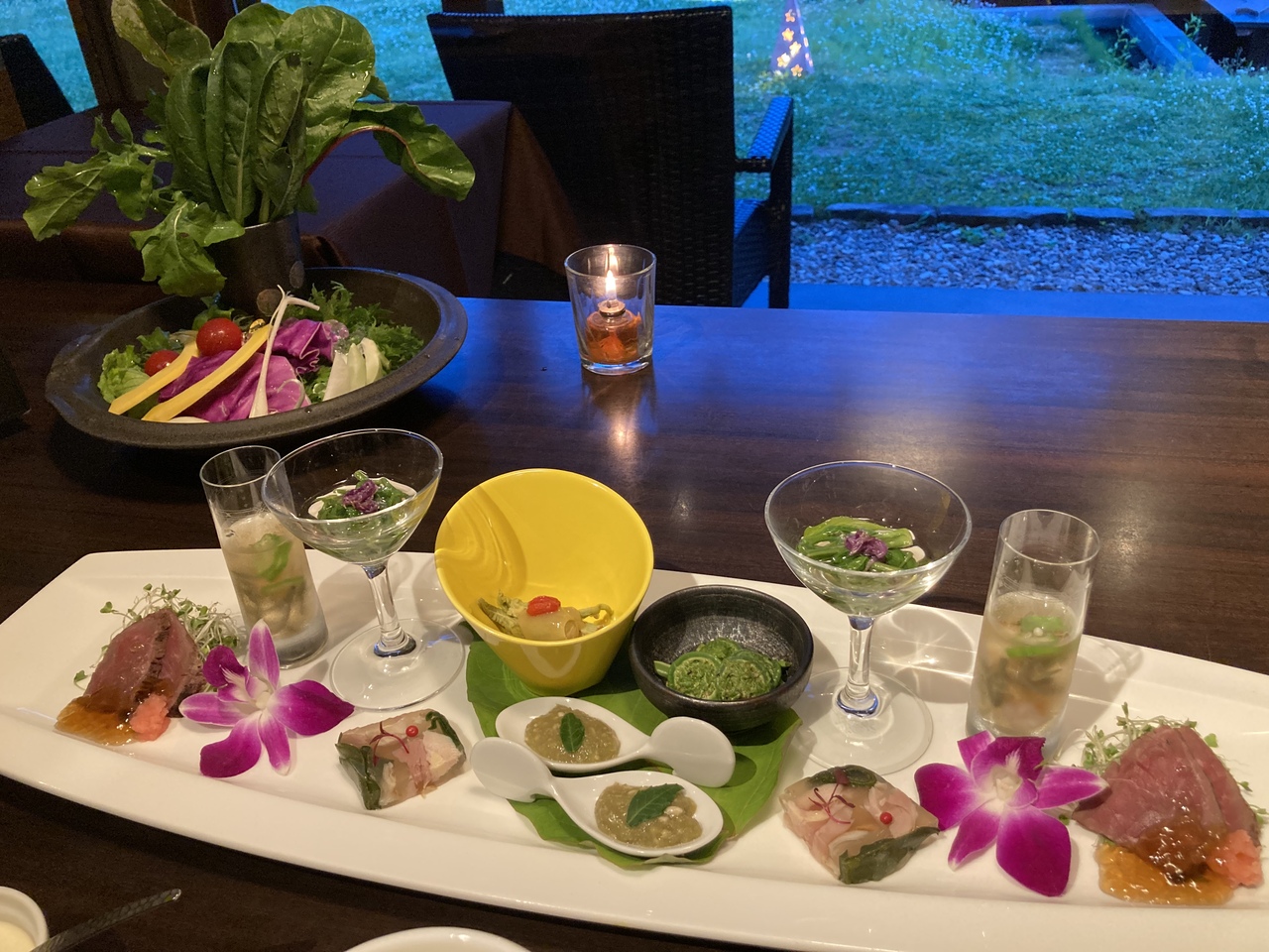 食事は期待以上でした。山菜や名柄肉などが華やかに並べられます。特に地元野菜の味の深さに驚きました。朝食も夕食に負けないくらいに魅力的です。湯田ヨーグルトや厚子牛乳が忘れらない味でした。