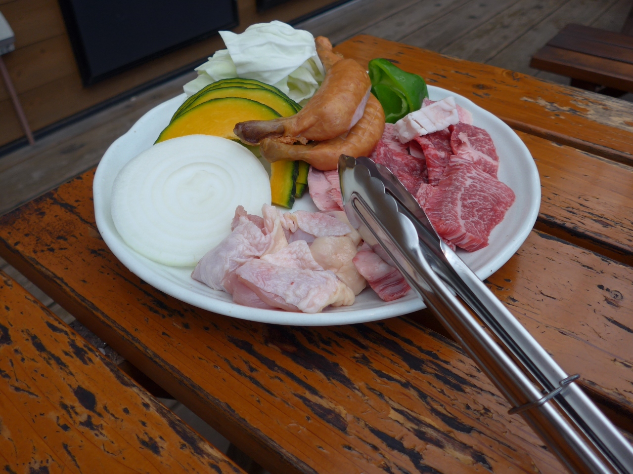 食事付きで申し込み朝食は室内にパンとインスタントコーヒー、夕食は焼肉をフロント等のレストランでして食べました。とてもお肉が美味しかったです。