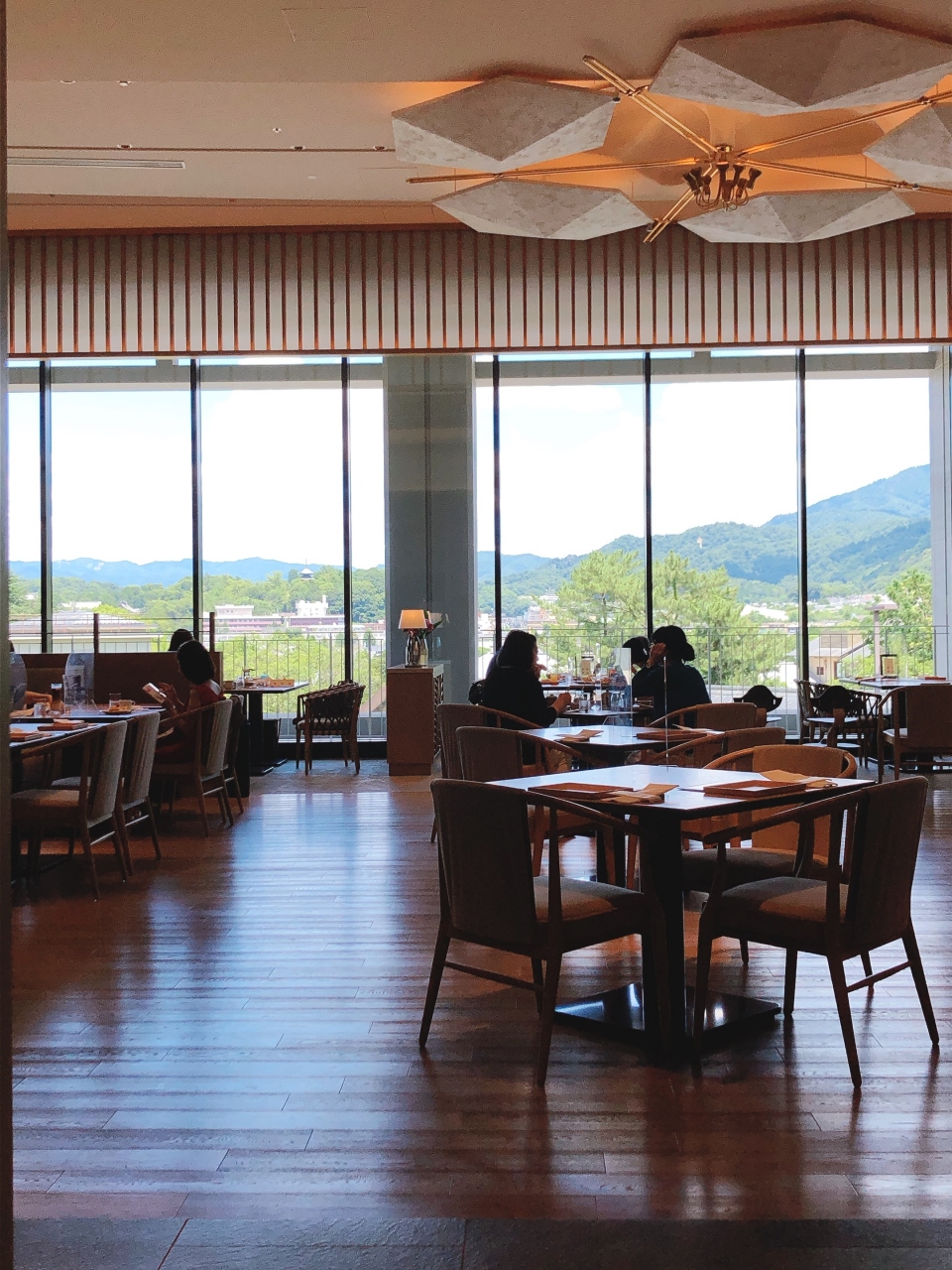 大きな窓から見える東山の豊かな緑に町屋の景色が清々しい印象を一番に感じたダイニング「洛空」、ランチメニューのビュッフェを頂きました。