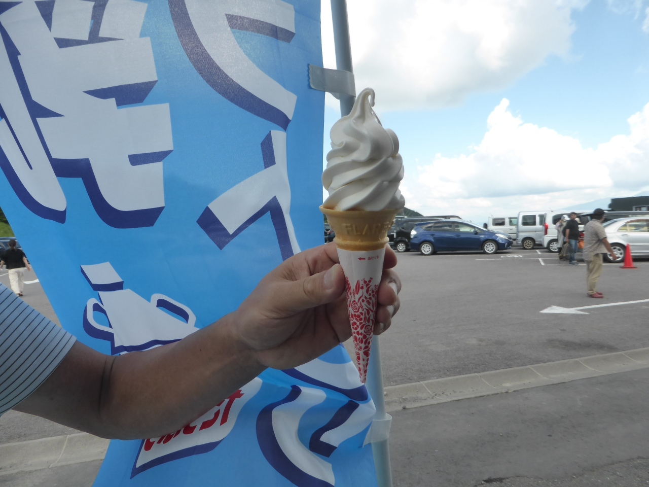 美ヶ原高原をトレッキングする際に山本小屋の駐車場(無料)に停め、有料のトイレ(100円)を借りました。山本小屋から美しの塔、塩くれ場、王ヶ頭までの往復約2時間です。戻ってから売店でソフトクリーム(350円)をいただきました。このロケーションと好天に恵まれ汗だくになったあとのソフトクリームはとても美味しかったです。
