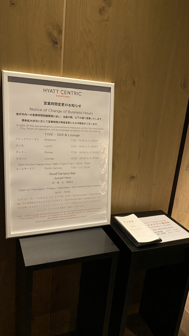 出来てようやく1周年になった(ハイアットハウスと同時です)ホテル。ハイアットハウスはサービスがかなり簡素化されている面積が広めのビジネスホテルという側面もありますが、ここはフルサービス型のホテルなので、内装などもハイアットハウスよりもかなり豪華です。館内の中庭でハイアットハウスと接続しています。レストランのメニューもよいですし、味もよいですが、金沢らしさが感じられるメニューではないように思えます。客室の設えもハイアットハウスとは違いかなり豪華で非常によかったです。