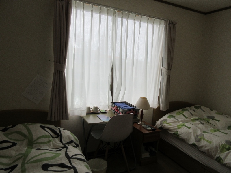 見かけはペンションのようですが、素泊まりでの予約でした。6畳弱の部屋にツインベッドとトイレ、ユニットバス付でした。夕食は併設の食堂で取りましたが、島の人が飲みにきていました。シンプルな接待で、気楽に過ごせました。