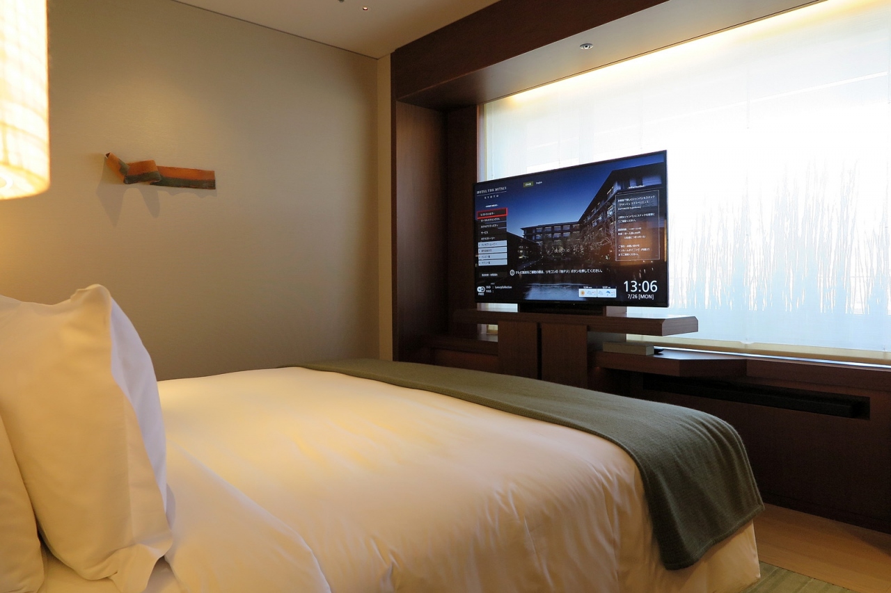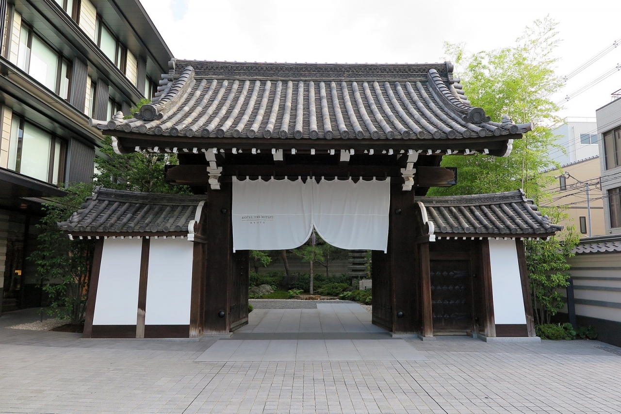2020年11月3日開業という新しいホテルです。以前は「京都国際ホテル」が建てられていた場所ですが、元は三井宗家の屋敷跡、由緒正しい土地に戻ってきたといえます。玄関は堀川通と反対側の油小路通り沿いですから要注意です。「二条城前」駅出口から堀川通を歩いて向かうと、ホテルを通り越してグルっと回り込むことになりますので、「ANAクラウンプラザホテル京都」手前の押小路通りを利用しましょう。敷地に入り、駆け寄ってきたベル係に荷物をわたし、登録有形文化財「梶井宮門」をくぐって館内という動線も良いです。案内されるのはレセプションデスクではなく庭を前にしたテーブル、そこで庭を愛でながら一息つき、お茶と千菓子をいただきながら、着物姿のスタッフによるチェックイン手続きというのも完璧です。アサインされたのはデラックススイート、二条城側ではありませんでしたが、何ともシックで美しい客室ですし、設備も至れり尽くせり。浴槽などは温泉仕様でもちろんテレビ付き、シャワーがボタン式というのも初めて目にしましたが、ストレスないですね。ホテル主催のエクスペリエンスのプログラムも充実(アートツアーなどは無料)していますし、朝食のレベルも高くて満足、もちろん接客も素晴らしいものでした。問題は…料金だけですね(笑)。
