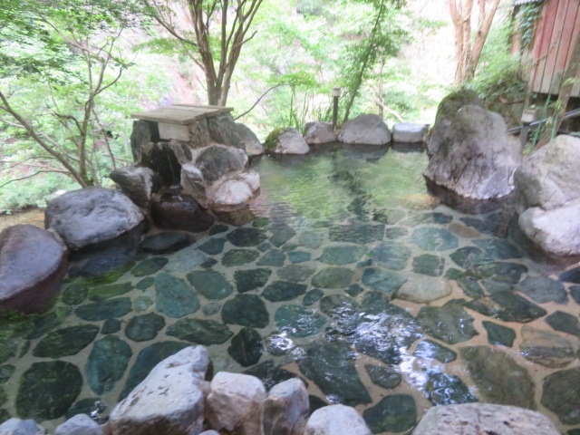 フロント・ロビーがある和風館と東館があります、今回は安い東館を利用しました、普通の和室でした、お風呂は露天風呂と大浴場があります、露天風呂にはアブが居たので1回だけ入りました、食事は食事会場で夕食・朝食ともバイキング、夕食時はアルコール類飲み放題です、ここの食事では鮎の塩焼きがありました、安く利用出来て良かったです。