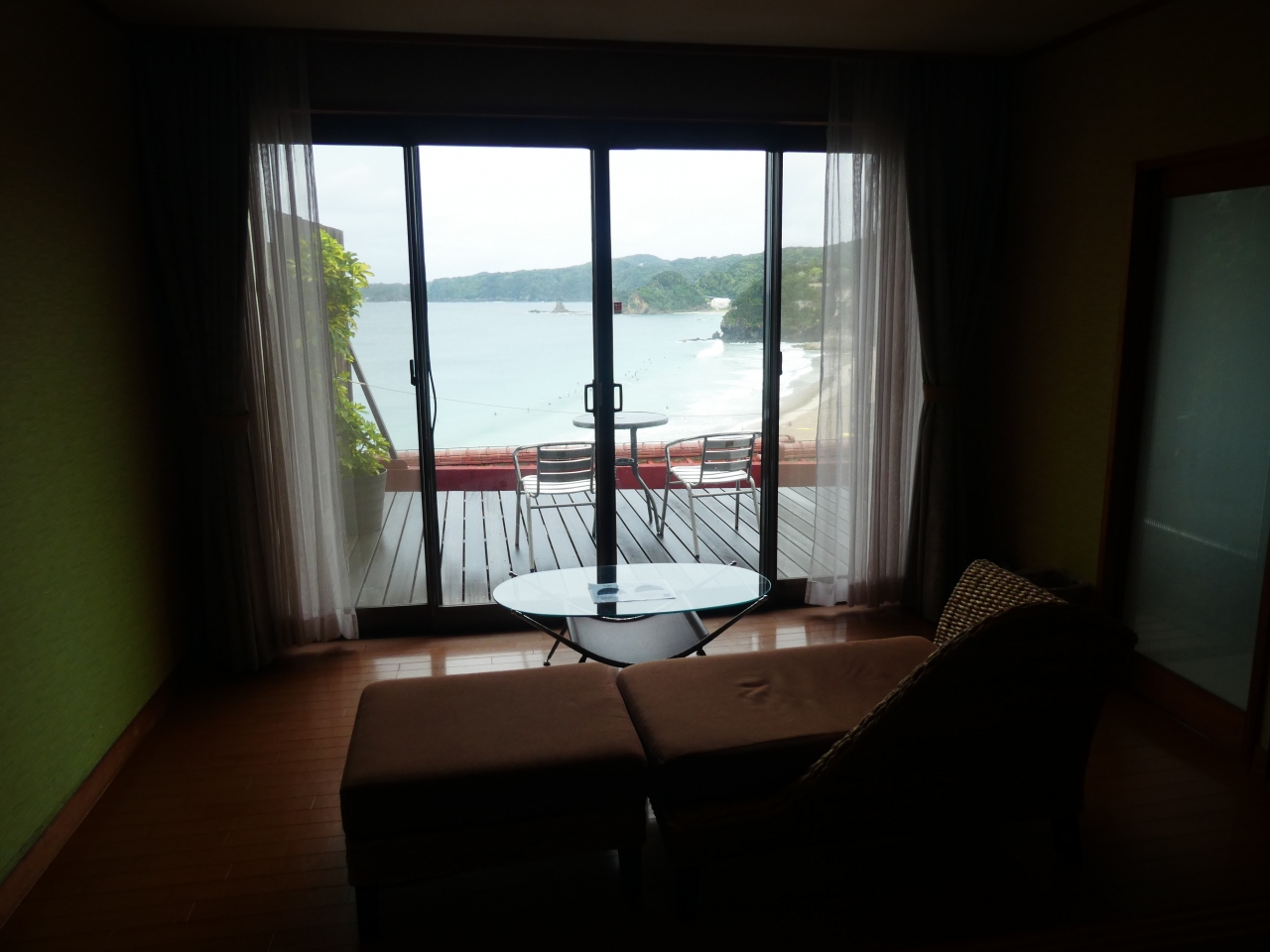 部屋からそのままビーチに出られるロケーション。波とたっぷり戯れたあとは、プールで少しクールダウンして、水着のまま部屋に戻れるのがいいですね。建物がテラス状に構成されていることと、エレベーターの場所があまり良くなかったこともあって、いつの間にか2‐3階分の上がり降りをすることになり、ある意味いい運動になりました。ただ廊下は、エアコンからか?そもそも経年化の匂いなのか?歩いている時、マスクをしていてもかなり気になりましたが。お部屋は広く、テラスもあり、眺めもよかったです。使いませんでしたが、温泉の出る内湯があります。食事は、アワビに金目に新鮮な海鮮料理。スタッフのみなさんもとても親切です。お風呂は和風浴場のほうが好きでした。露天は眺めがいいのですが、2‐3階上まで歩いて上がらないといけないのでかなり疲れます。洋風浴場の露天は、個人的には好みの浴槽ではなかったので、もっぱら内湯を利用しました。