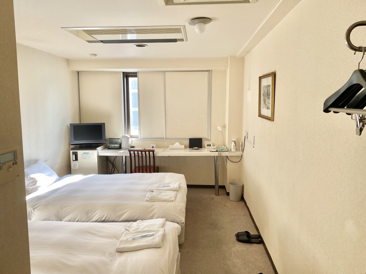 喫煙ツインルームがあるホテルは少ないので、喫煙者にはありがたい。窓が開くので臭いはあまり気になりませんでした。