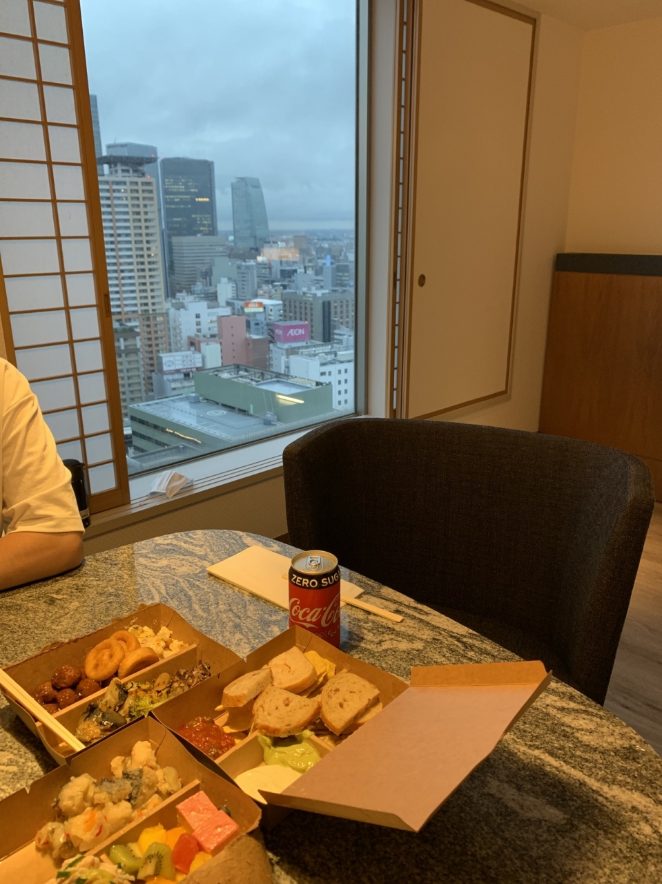 ラウンジ自体は時短営業をしていて、ソフトドリンクや食べ物の提供はされています。カクテルタイムは蔓延防止措置に合わせてアルコールの提供がありませんでしたが、ウェルカムドリンクでビールを選び、部屋で持ち帰ったラウンジの食事(部屋で食べたい人にはテイクアウト用の空のランチボックスをもらえます!)をいただきました。朝食はインプレイス3-3で、和洋中なんでも揃って迷うくらい。どちらも大変美味しかったです!