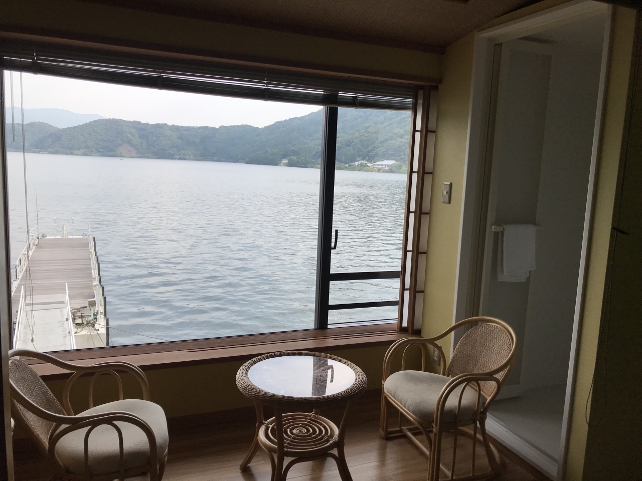 部屋は、シャワーブースがついた水月湖を望められる和室で、快適に過ごせ、また食事も、水月湖を眺められるレストランで、若狭牛やヤリイカなど若狭の幸を満喫できました。