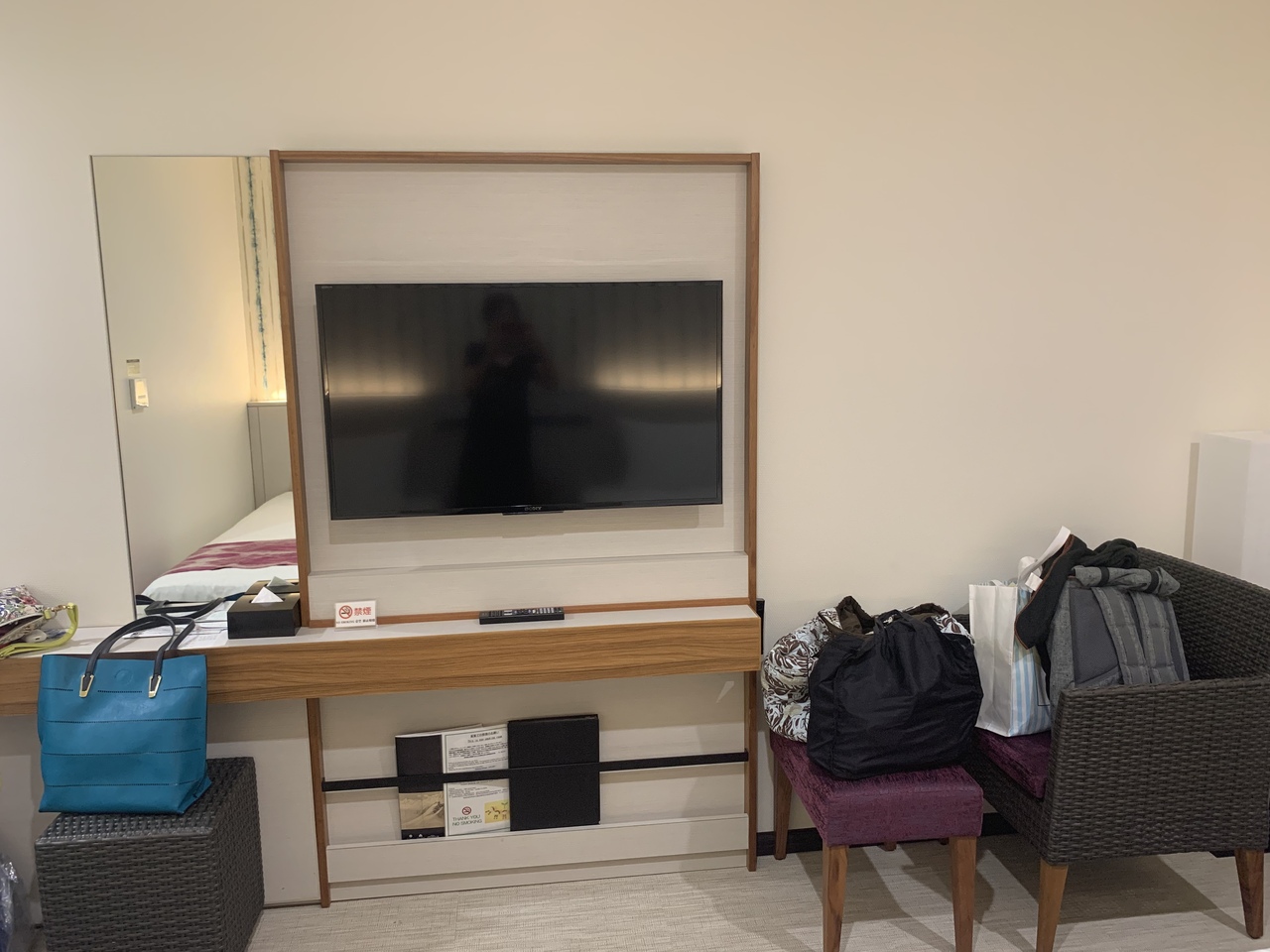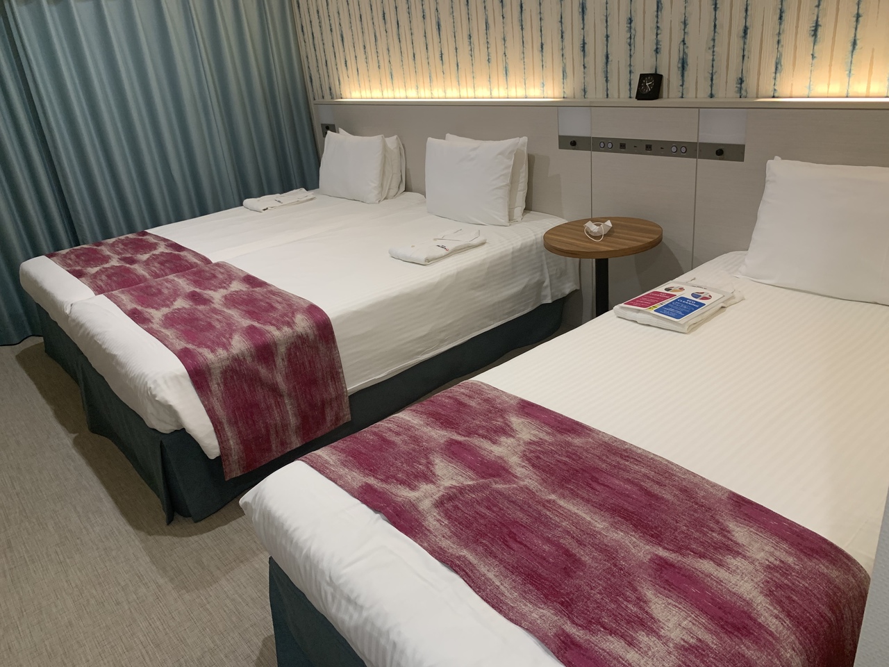 ツアー利用だったので、選べた部屋はソファーベッド利用で3人でしたが、トリプルに変更してくれました。綺麗なユニットバスでした。部屋の小さい冷蔵庫には、冷凍スペースがなく、保冷剤を持参したのに残念でした。スリッパが共用だったので、前のホテルで貰った、使い捨てスリッパを使用しました。