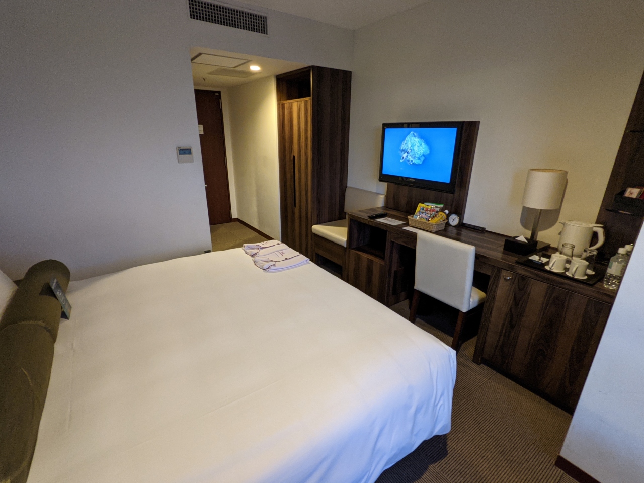 3回目の宿泊で夜間に到着した時や翌日朝の便で帰るときにはとても重宝するホテル。安定の5千円台後半で宿泊。今回はプラチナ会員だったので朝食無料とワンドリンクチケットをもらった。さらにお部屋にはお菓子の詰め合わせがあった。お部屋も最安からスーペリアキングにアップグレード。最上階で奥武山公園が一望できるよいお部屋でした。さらにプラチナだとレイトチェックアウトはなんと17時まで可能のようです。