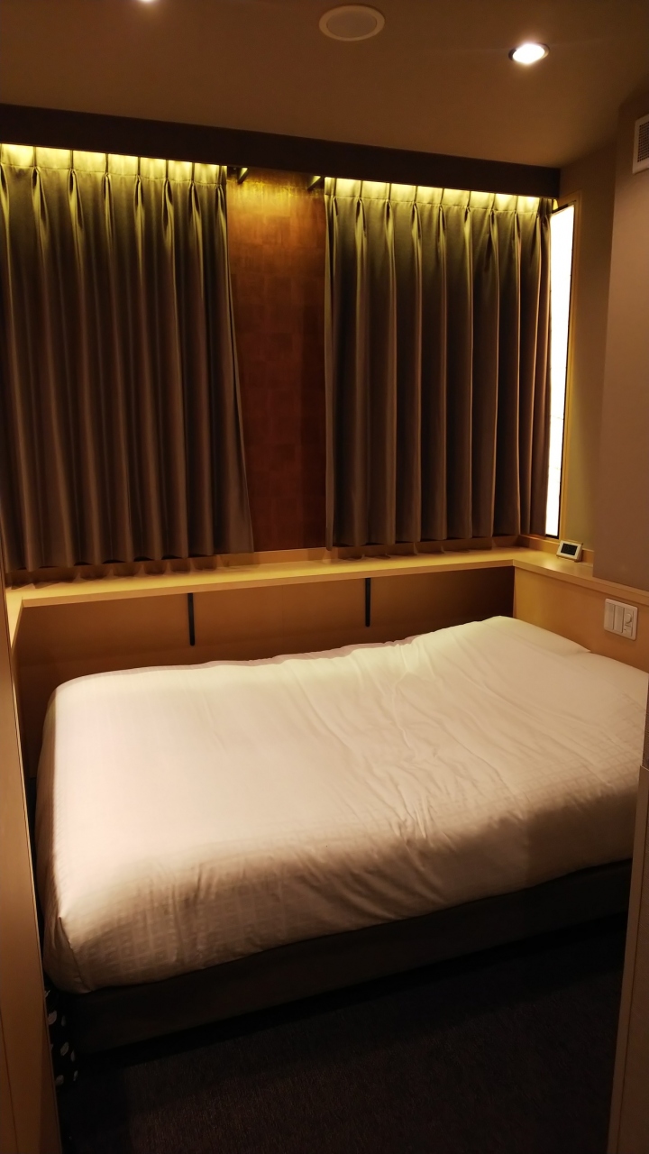 ダブルルームに宿泊。部屋は決して広くはないが、ベッド周りに棚のようなスペースがあり、ベッド上でゴロゴロして過ごすのには良い環境だった。