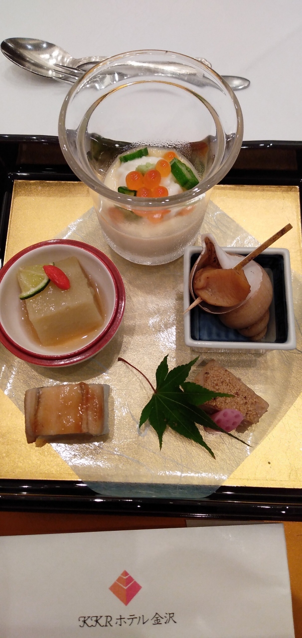 金沢城公園となり、近江町市場は徒歩圏内、とロケーションは最高に良く食事もホテルの矜持を感じさせる凝ったお品でした。ベッド周りの電源類や、Wi-fiのしっかりした飛び具合など、近代改修済の点も多く、快適でした。