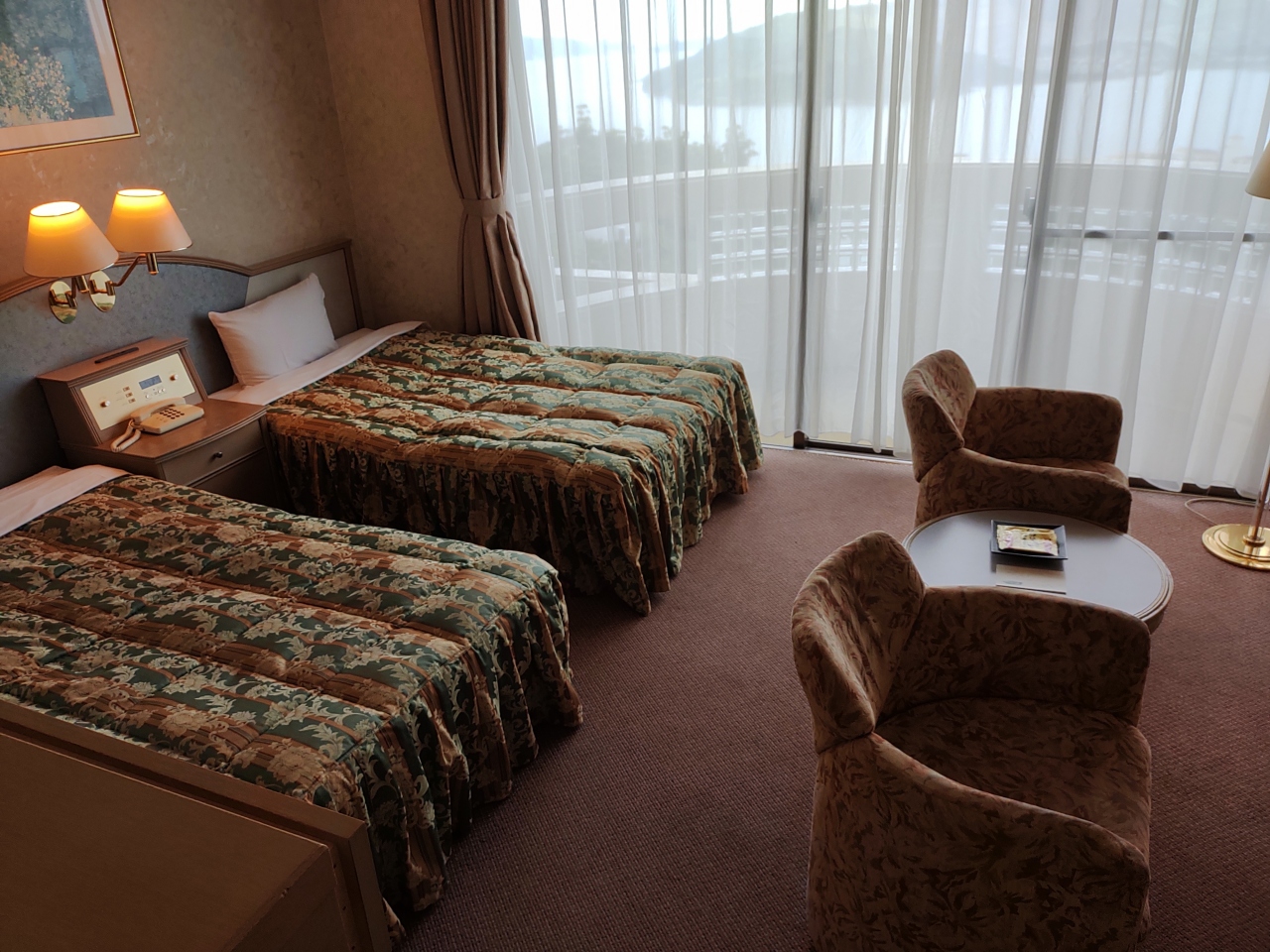 お部屋は和洋室で広々としていて、ゆったり過ごせました。お風呂は、風情ある露天風呂が温泉で、内風呂はジャグジーになっていました。入湯税は300円でした。夕食のフレンチのトマトスープが美味しかったです。また、朝食の男性スタッフさんが感じが良く親切でした。