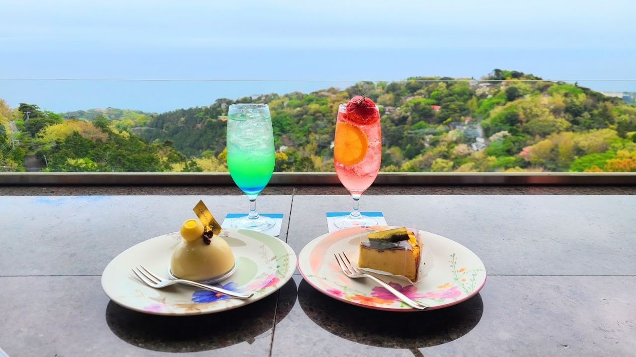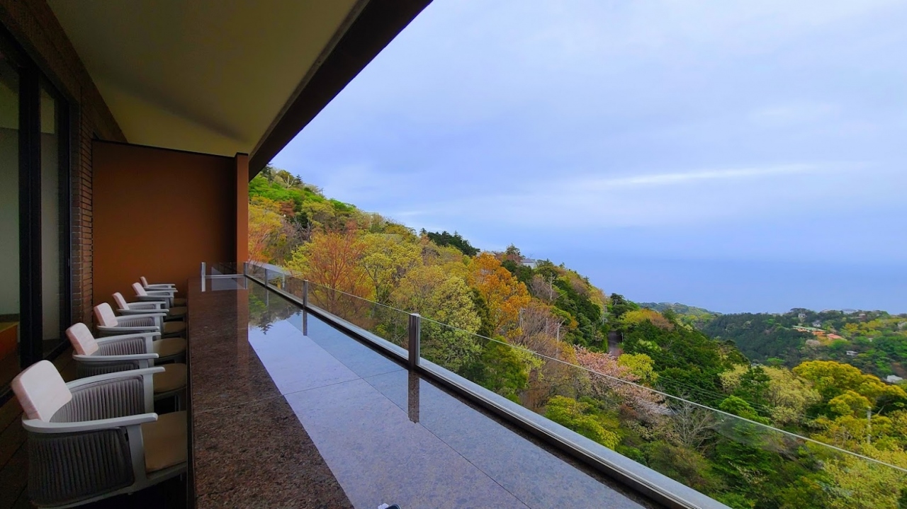 熱川の別荘地でもいちばん高い場所に建つホテルで、眼下に海を見下ろすことができます。