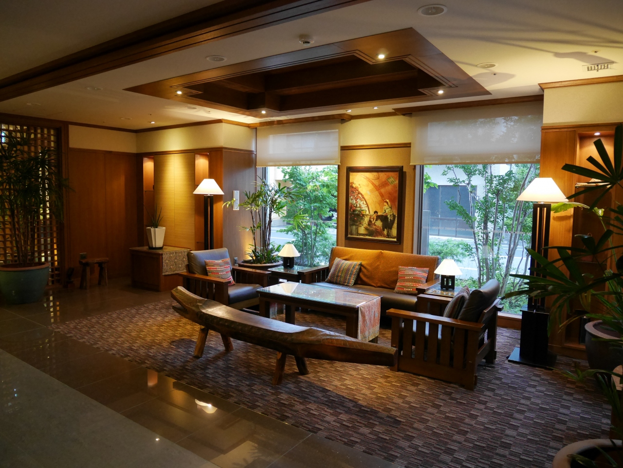 特筆すべき点として、ロビーフロアのゴージャスさが挙げられます。オリエンタルな装飾が施され、調度品なども多く、何ヵ所にもソファーが配置されており、くつろげるようになっていました。