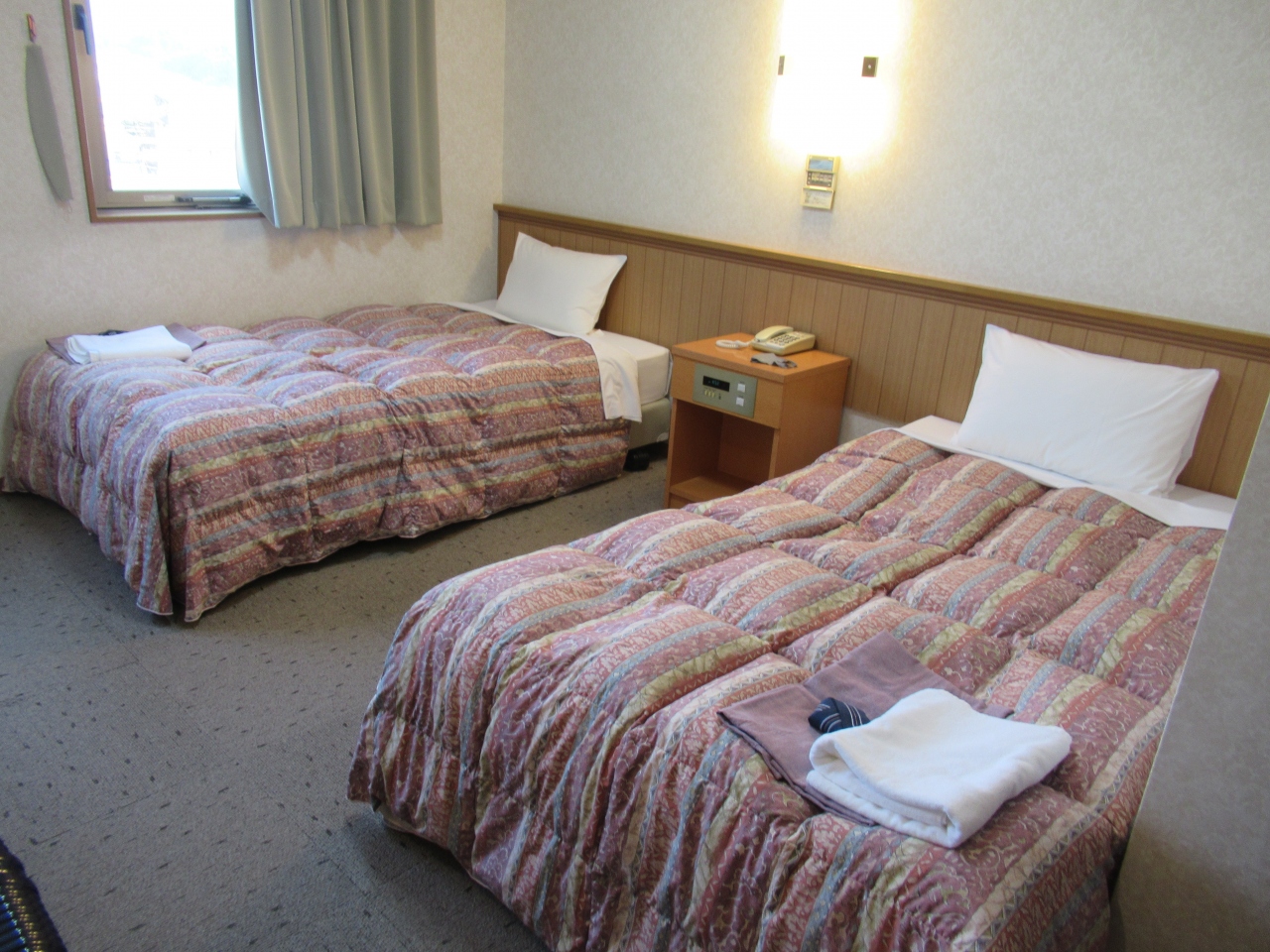 3人で宿泊 1泊2食付き スタンダード洋室27㎡ ツインベッドでエキストラベッドを入れても広いです 海が近いようで遠くて窓からは裏の野球場が見えました 温泉大浴... もっと見る