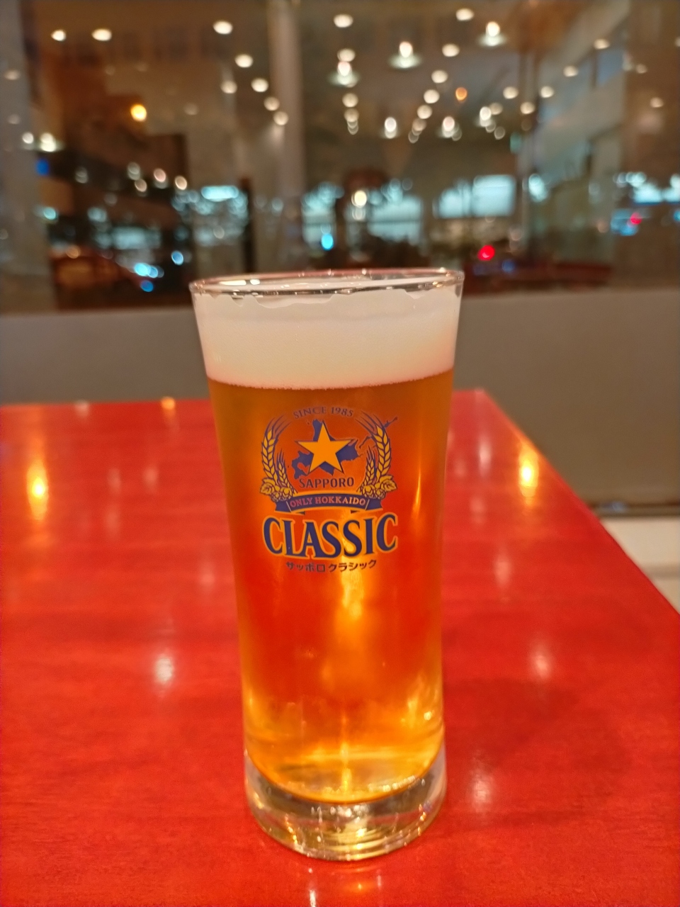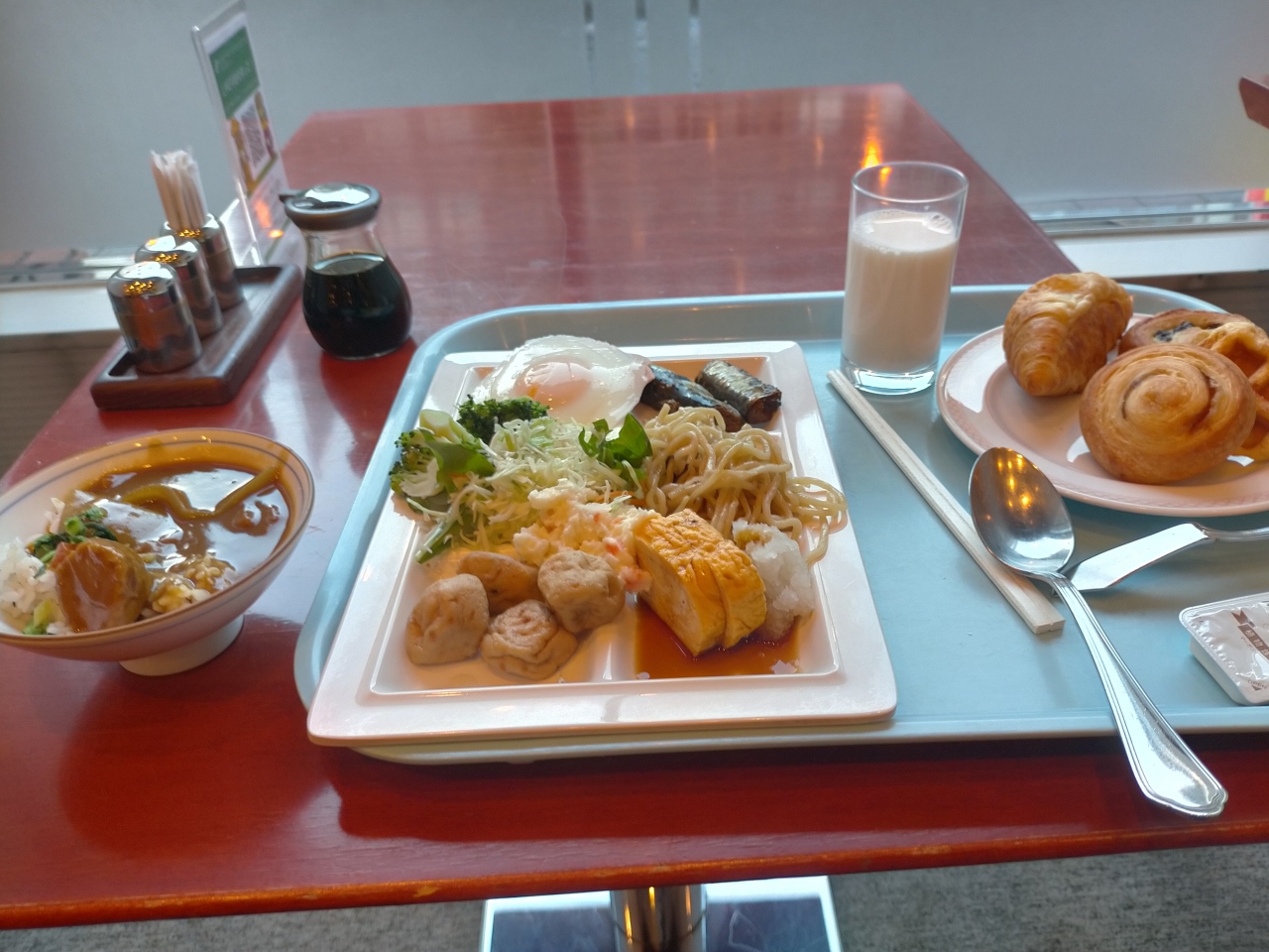 朝食はご当地グルメのメニューな何もなくごく普通の朝食ブッフェでしたが、うれしいのは18時から20時まではハッピーアワーでセルフサービスですがカレーとアルコールを含むワンドリンクが無料になっていてサッポロクラシックの生を飲むことができました。