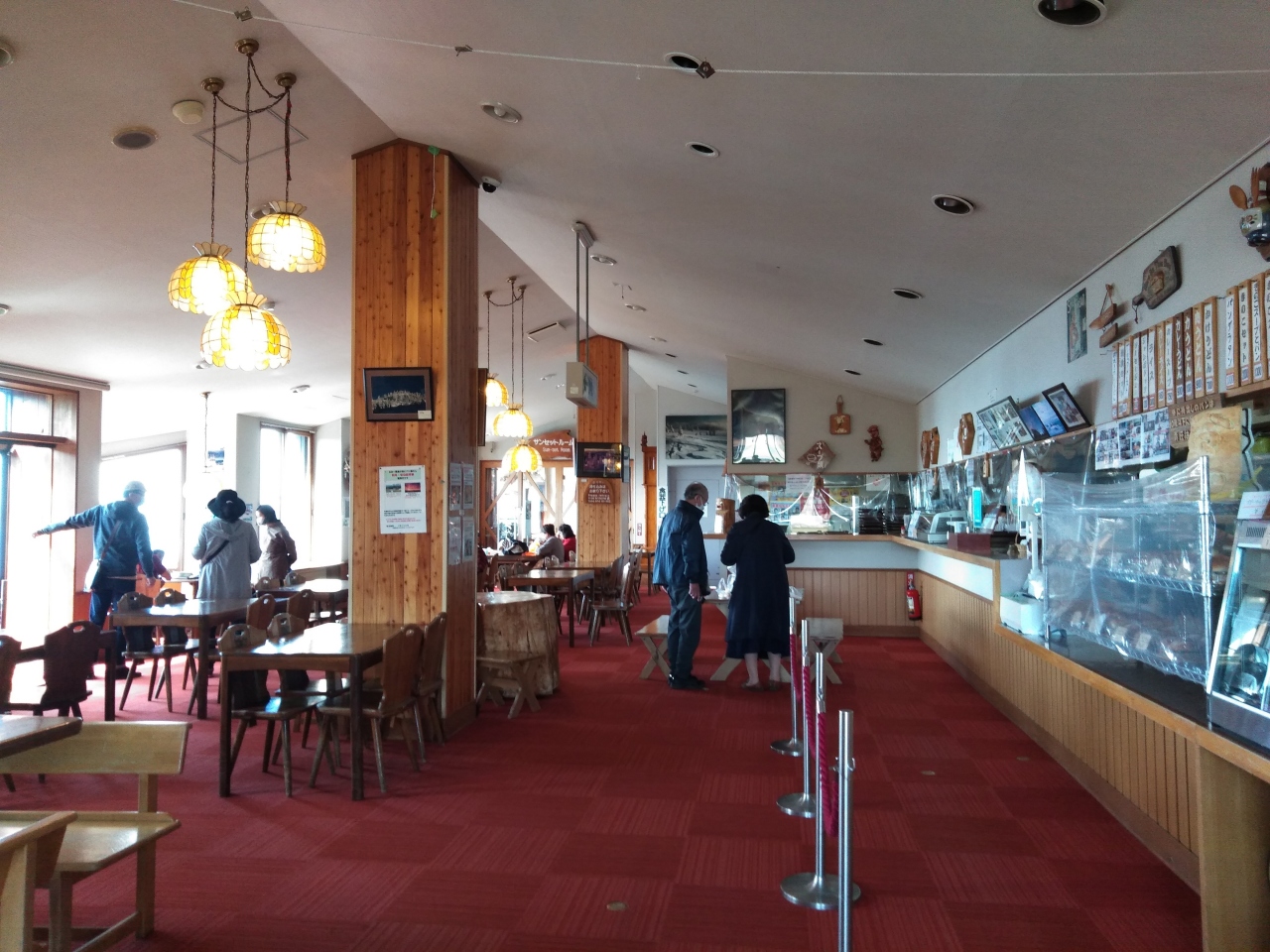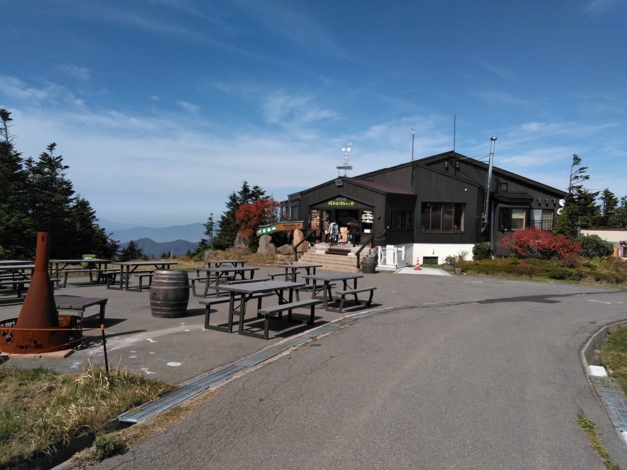スカイレーターの道路の反対側に無料の駐車場があります。スカイレーターをスカイペアリフトを乗り継いで、横手山山頂駅へ行くと、すぐ近くにあります。パン屋さんとレストランがあって、眺めの良いテラスもあります。宿泊が出来るのは知りませんでした。