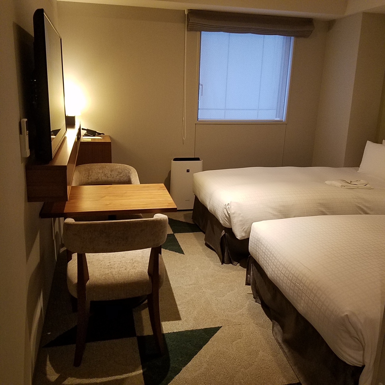 狸小路ほど近くにある東急ステイ札幌大通です。部屋に空きがあるということで広いお部屋通して貰いました。