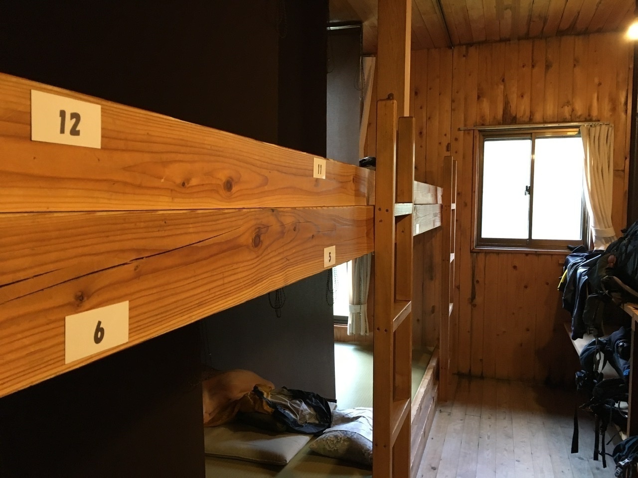 山小屋は、富士山以来の宿泊でしたが、寝床は、布団がちゃんとあり、快適な睡眠がとれました。