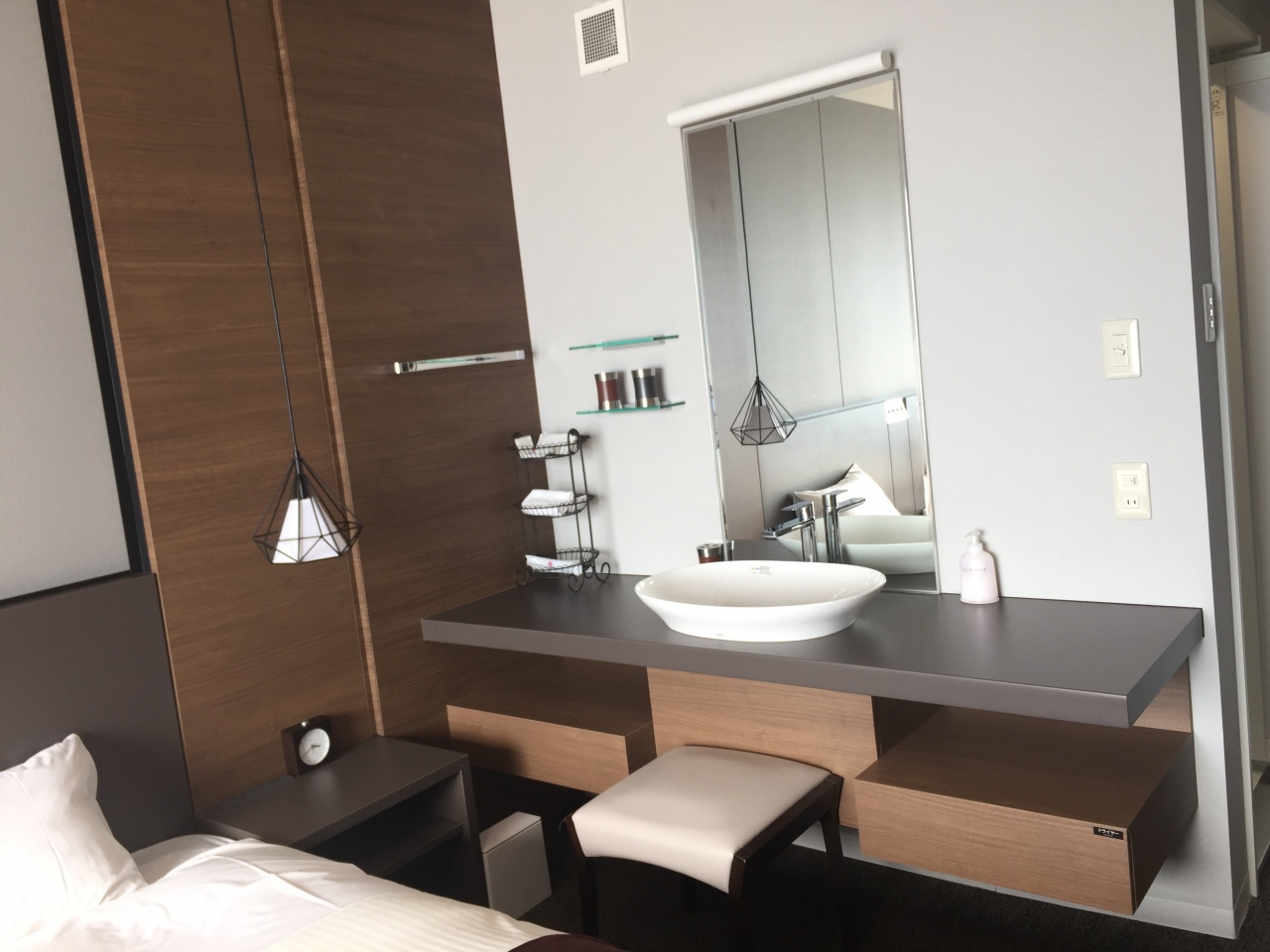 洗面台がお部屋の中(ベッドルーム)にあり、違和感を感じました。洗面や歯磨きしている場面を見られたくない場合もありますよね。