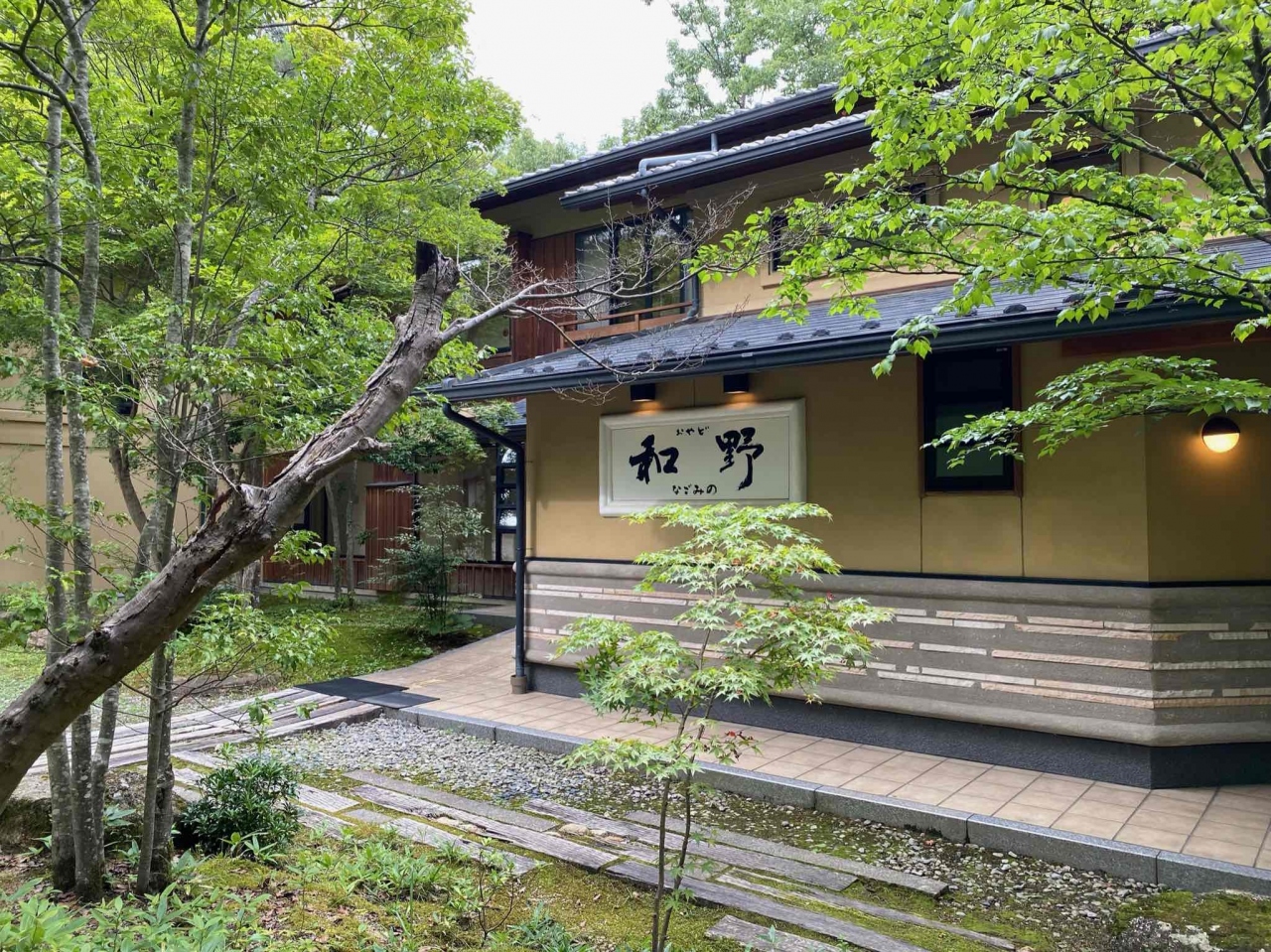 お宿は落ち着いた日本家屋で、玄関やお庭の木々の緑が美しかったです。温泉は普通の印象ですが、湯上りの休憩所でお茶をいただきながらのんびりできました。