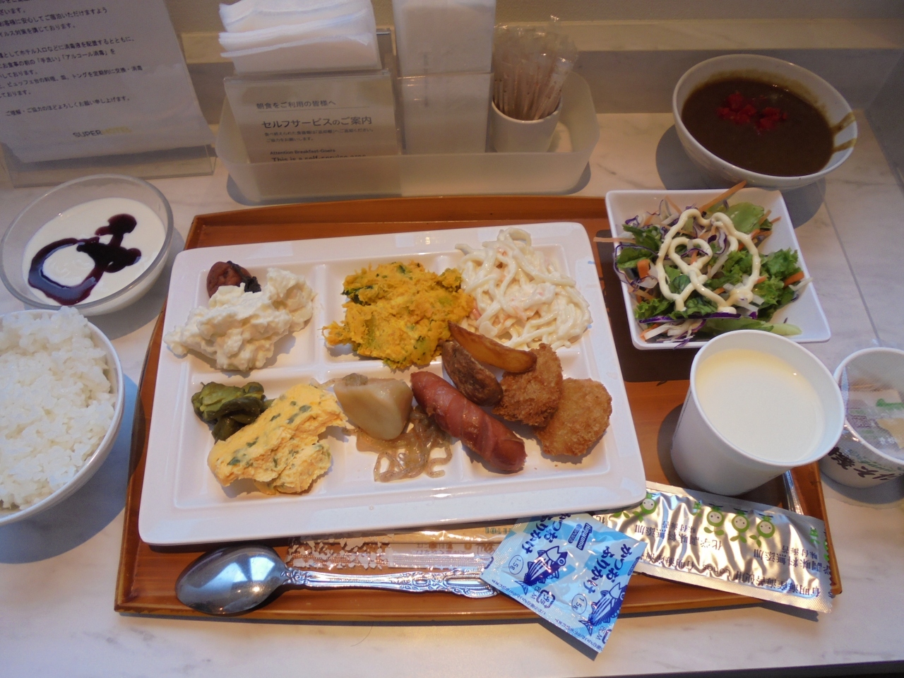 専用駐車場は車幅スペースが狭いが、無料。部屋や浴場は八戸のスーパーホテルと大体同じ。違う点は室内にティーバッグがない。エアコンのスイッチを入れるととてもカビ臭かった。ベッドも少しカビ臭いような感じ。部屋を替えてもらおうかと思ったが、荷物をまとめて移動するのが面倒、まあ一泊だけだからこのままで。室内専用スリッパが横に広すぎて歩きにくい。枕元に電源コンセントが欲しい。窓ガラスにカラスのフンがべっとり付いているのにも閉口。朝食のメニューは八戸のスーパーホテルよりは多め、味は同じ程度。無料朝食の内容がいいから、総合評価は★3つにしました。