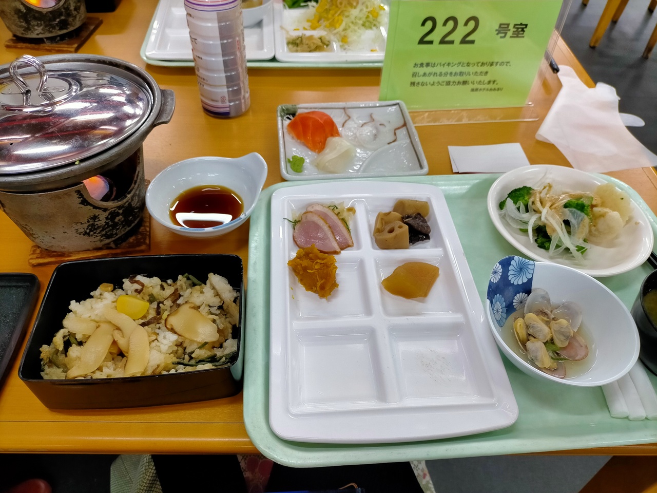 食事はハーフバイキングで、一泊の価格を考えたらちょっと水っぽい松茸ご飯でも十分でした。