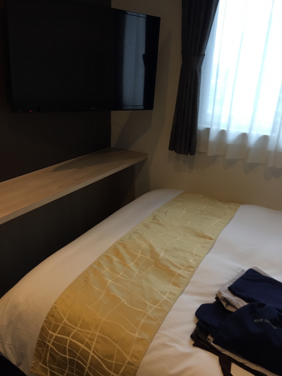 部屋は狭いですがTVは大きめで、大浴場の混雑具合がわかったり、持ち歩けるスマホがあったり、設備は充実しています。Wi-Fiも早かったです。